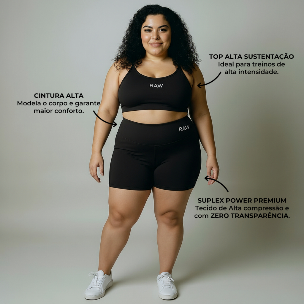 Conjunto Academia Plus Size Top e Short Fitness Zero Transparência