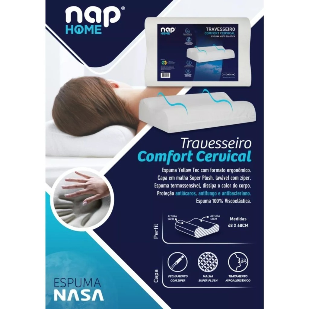 Travesseiro Cervical 12/14cm Comfort Espuma Viscoletastica Nasa Ortopédico Nap TRCC
