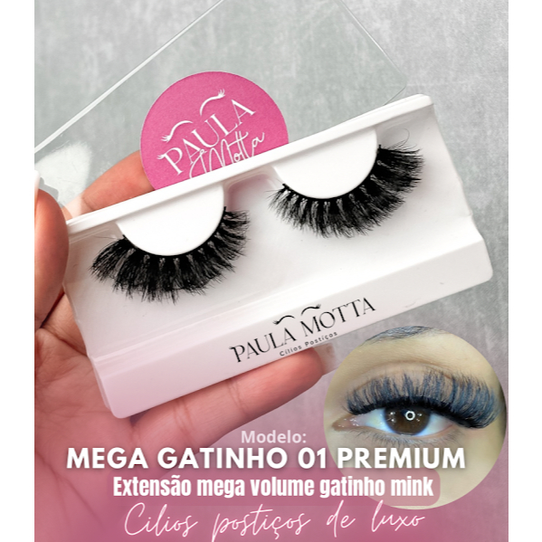 Cílios Postiços Mega Gatinho 01 Premium | Curvatura D | Efeito Extensão Gatinho 5D Profissional