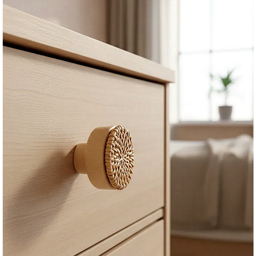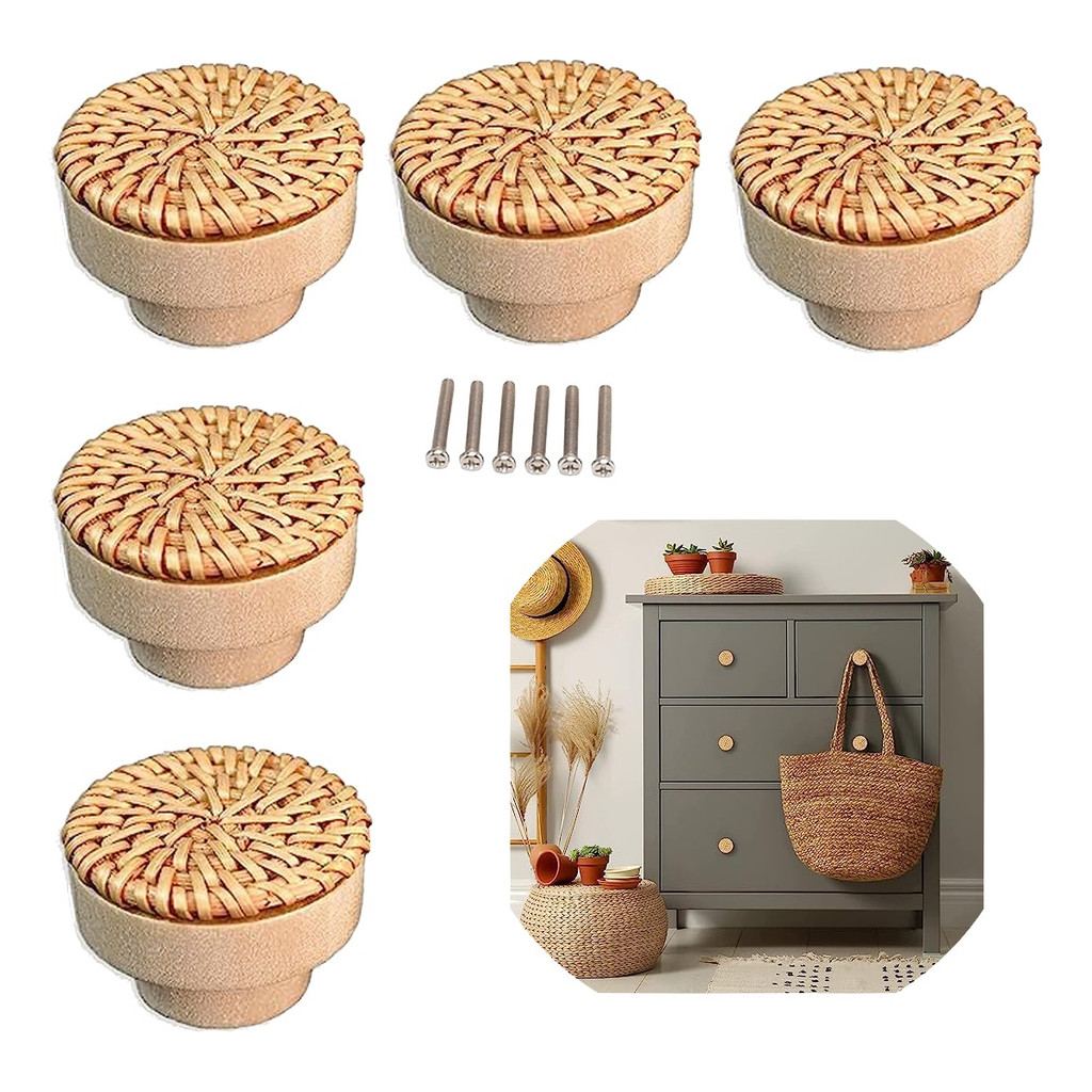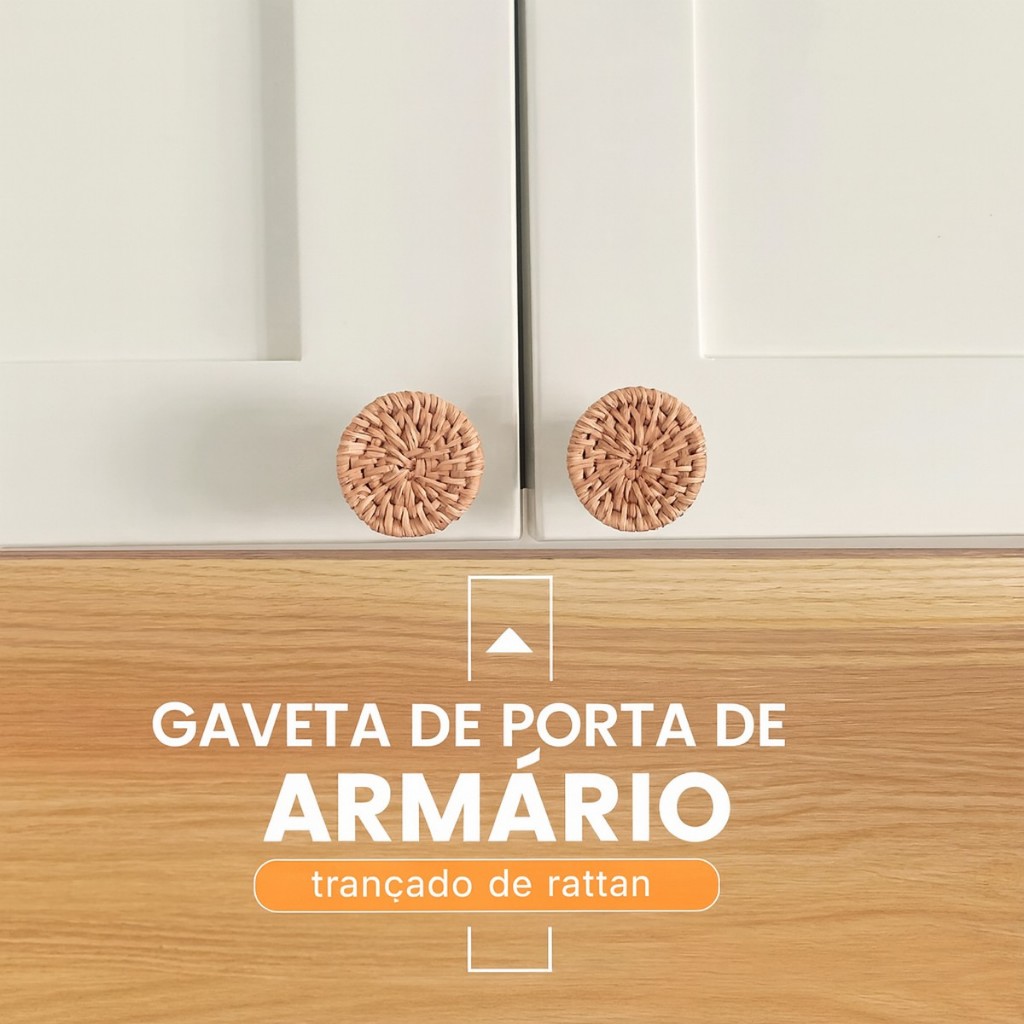 12 Puxadores Armário Gaveta Rattan Madeira Vintage