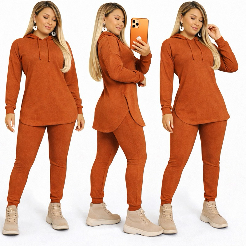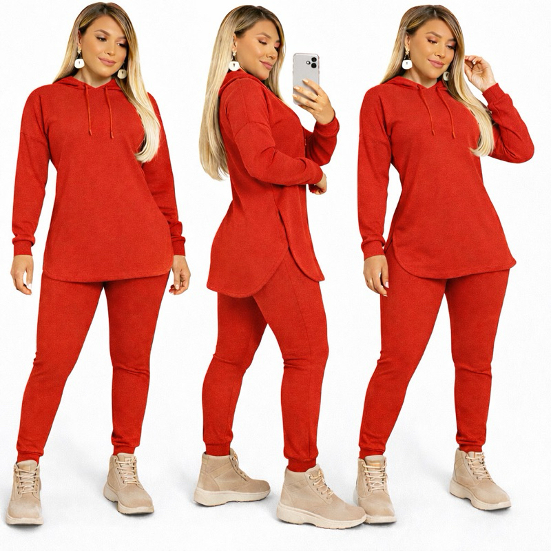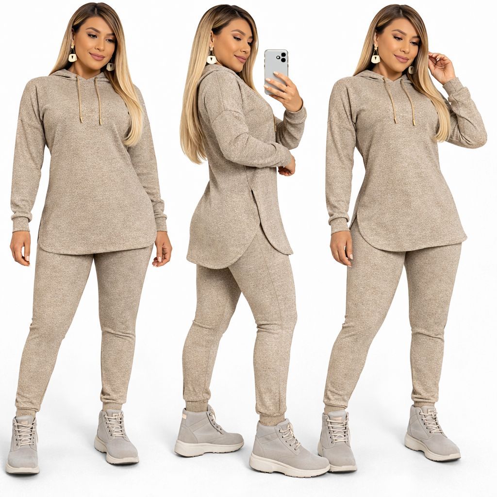 Conjunto casual mais vendidos Lanzinha com Bolso e touca com cordão punho moda feminina outono inverno festa