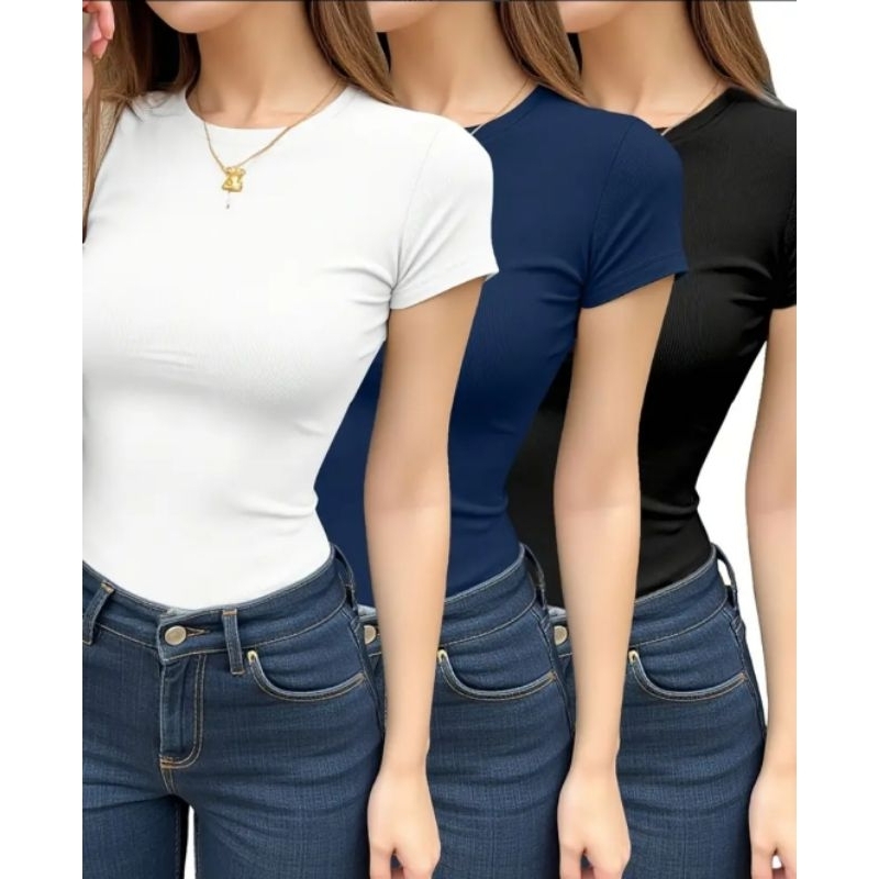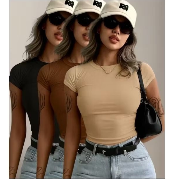 KIT 3 Blusa Feminina Manga Curta Baby tee