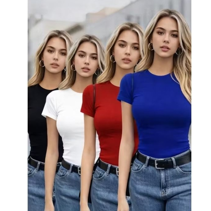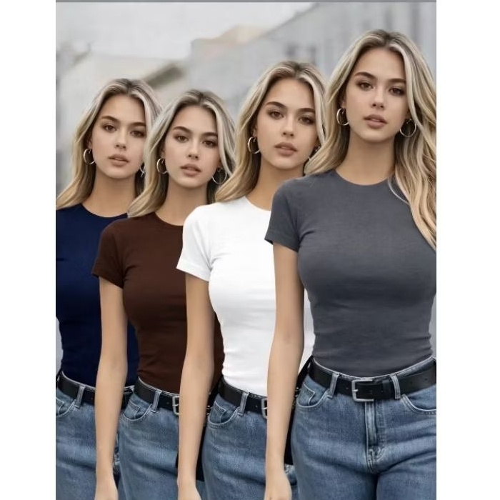 Kit 4 Blusa Feminina Baby tee Blusa Manga Curta