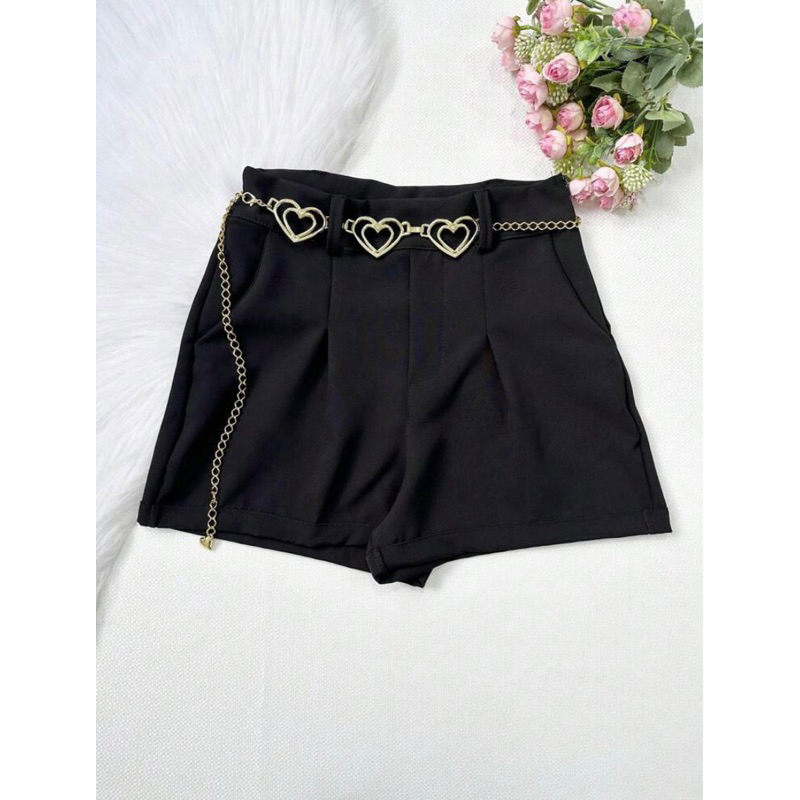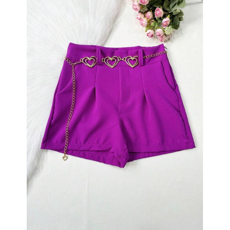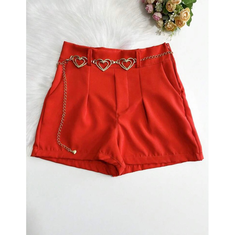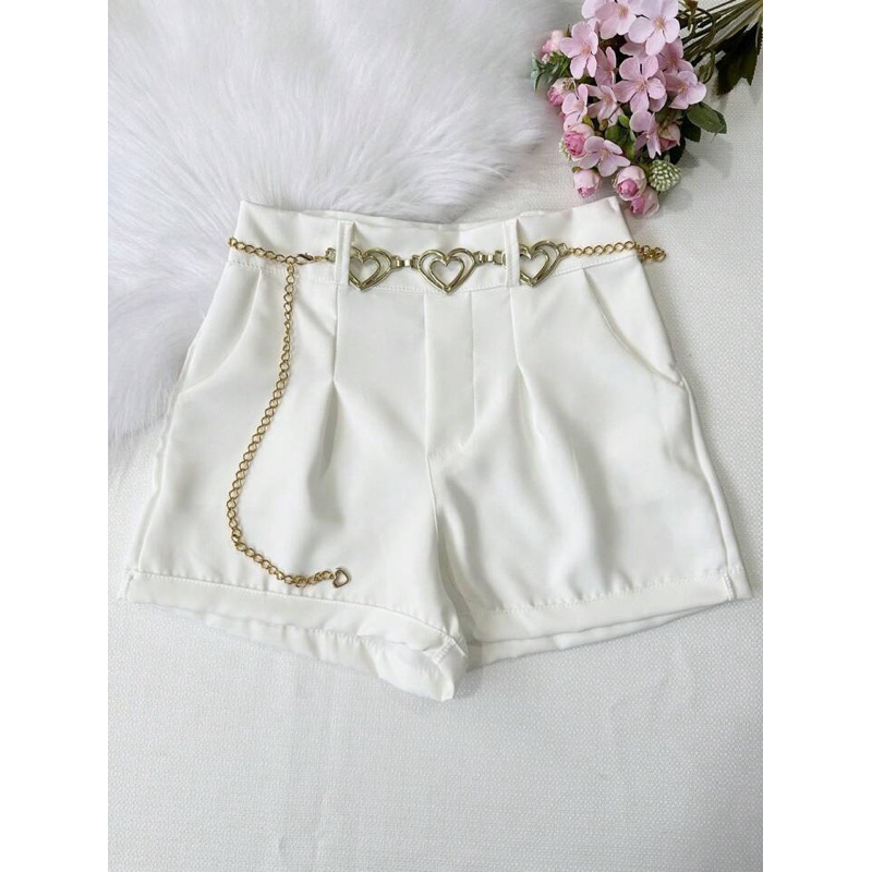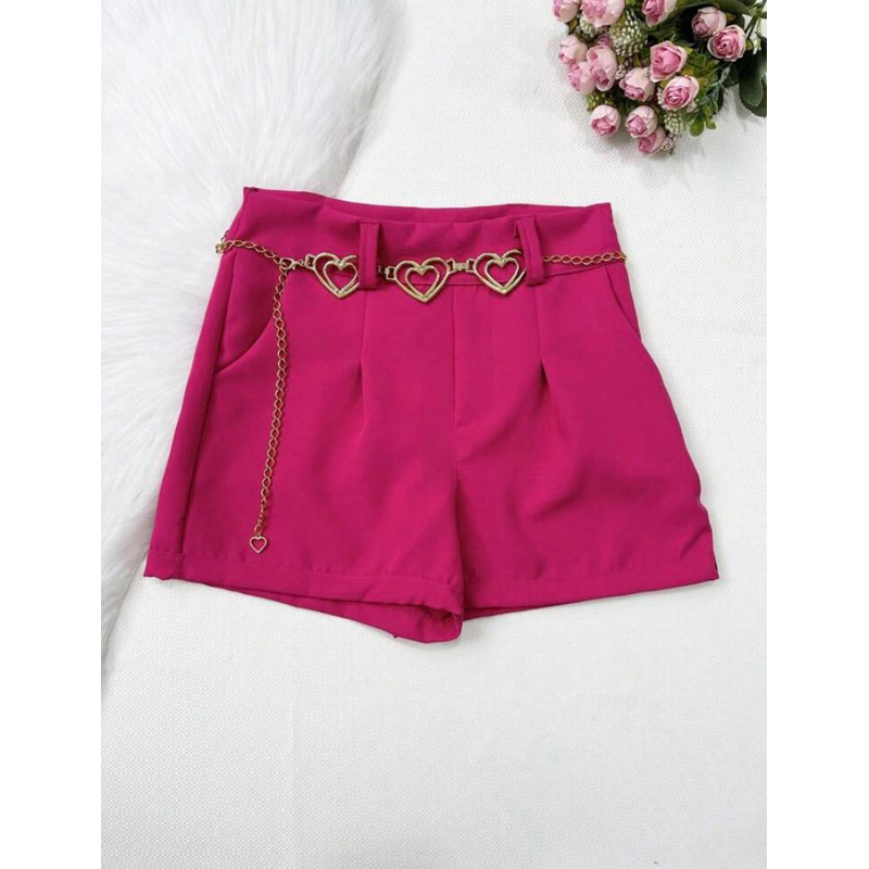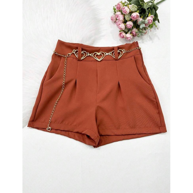 Short Feminino Alfaiataria Com Cinto Coração