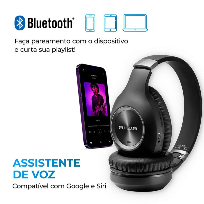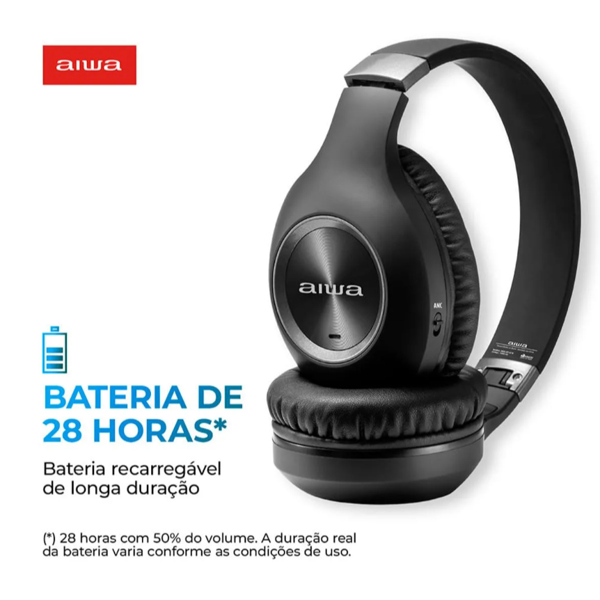 Fone de Ouvido Headphone Bluetooth AIWA HP-02-B ANC Alta Definição Preto Novo com Caixa Danificada