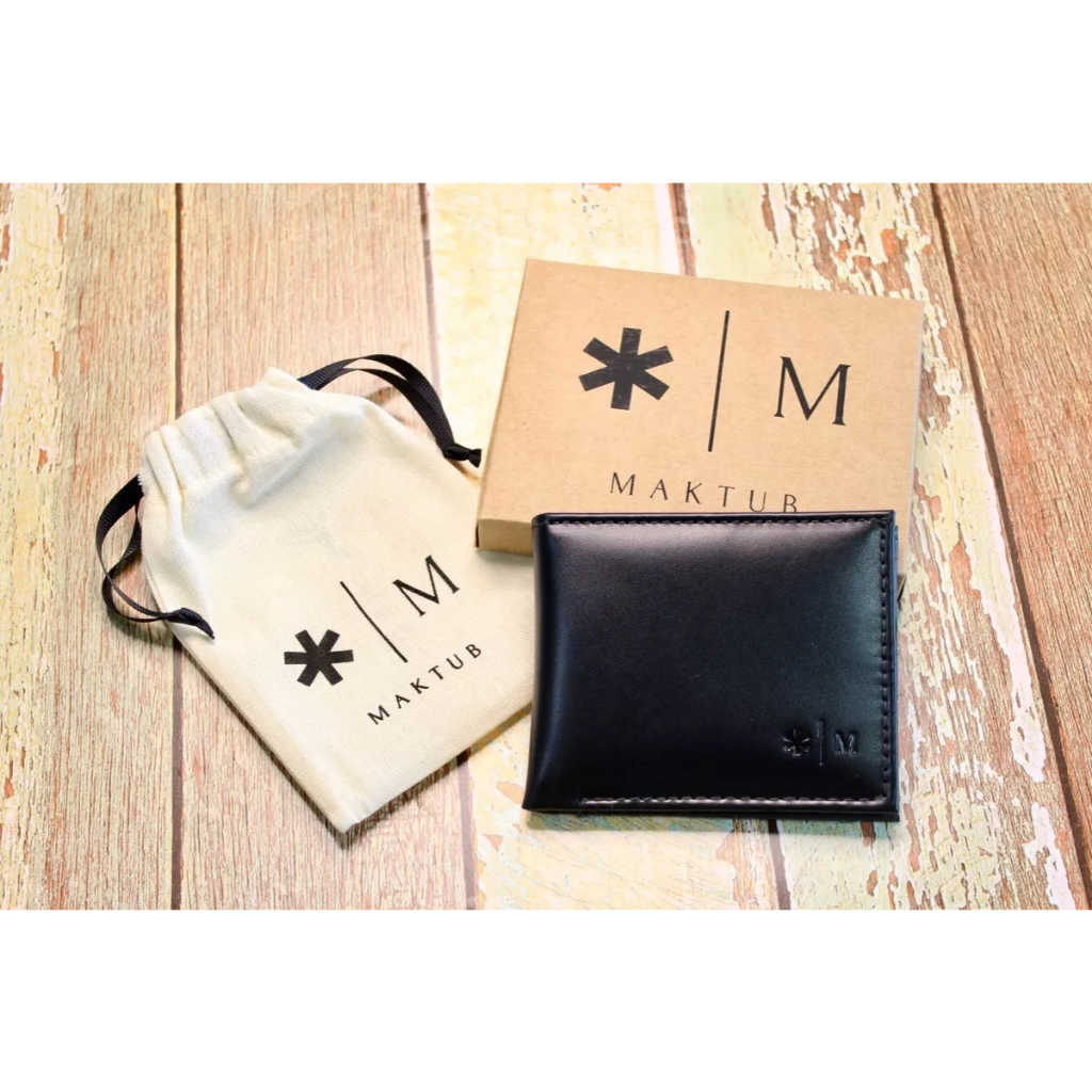 Carteira em couro marca Maktub Cuba All Black Em Couro Liso Classic