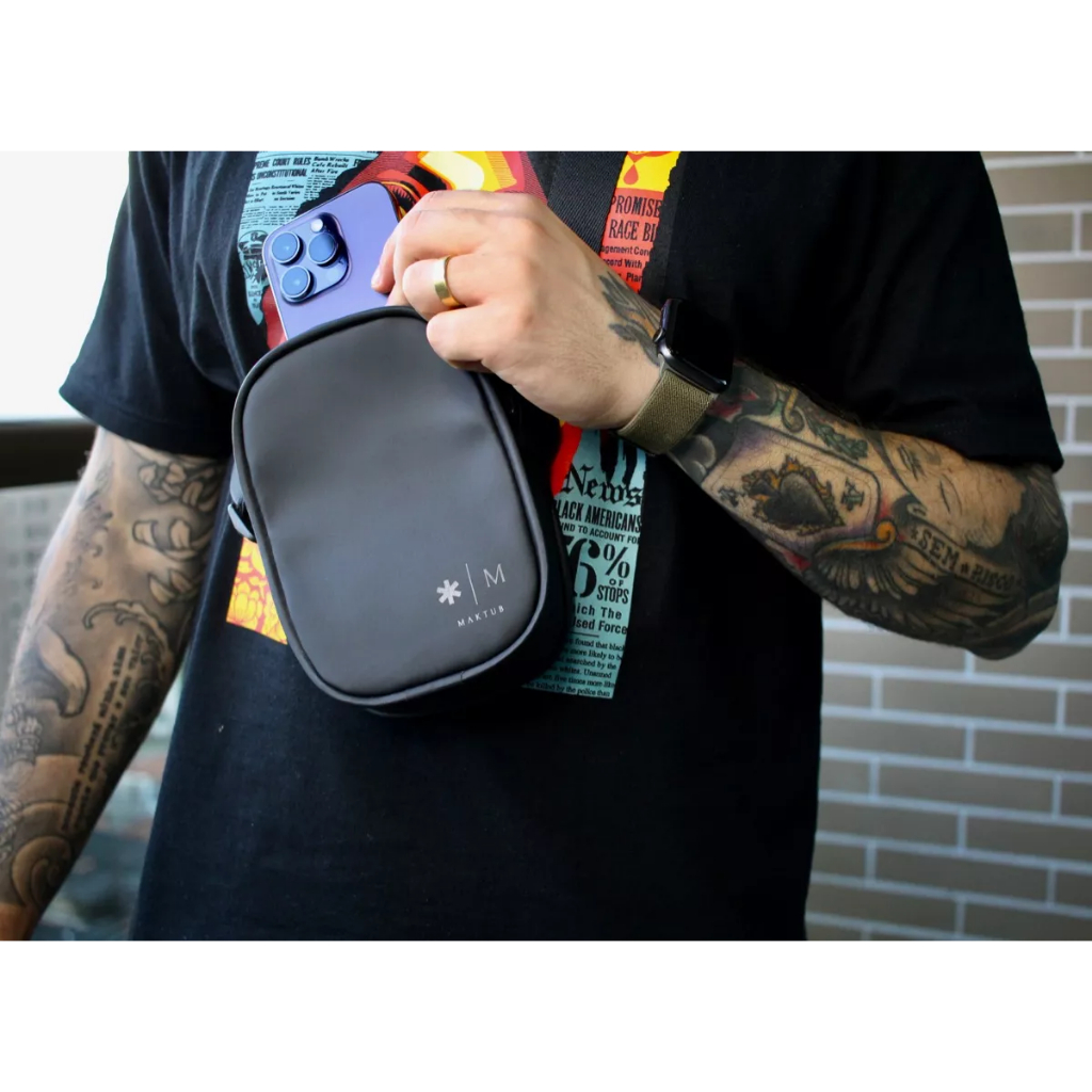 Shoulder Bag Pochete de Ombro Bolsa Masculina Transversal Maktub com Alça de Ombro