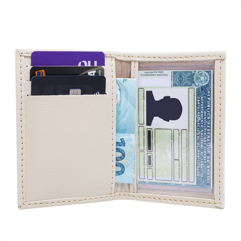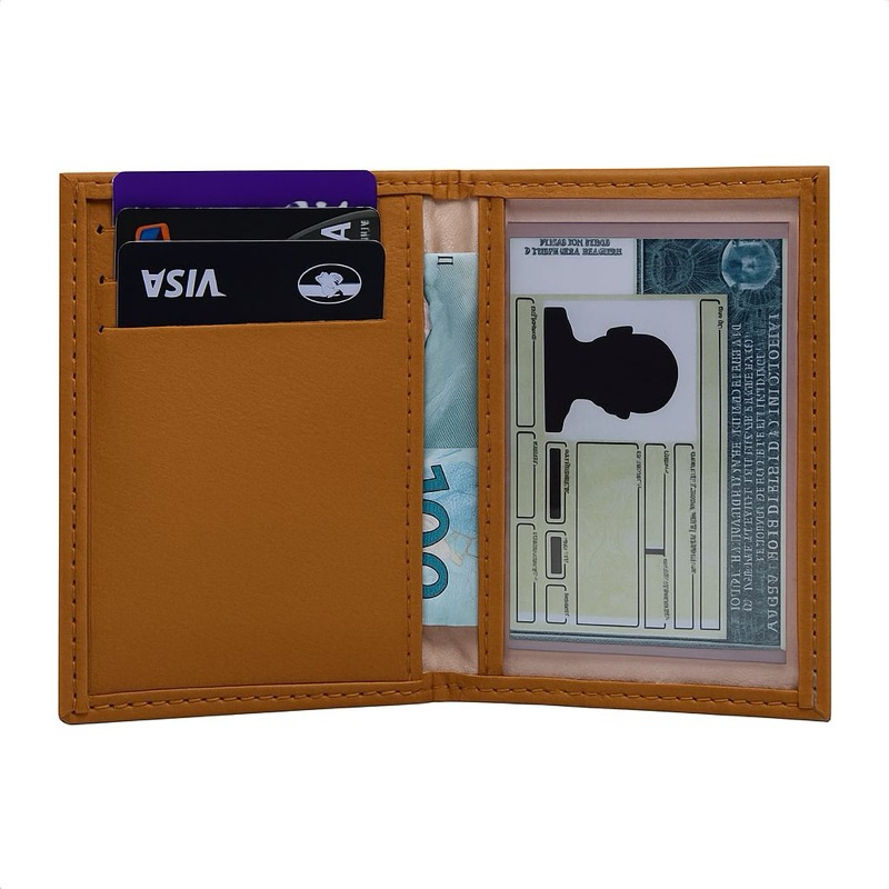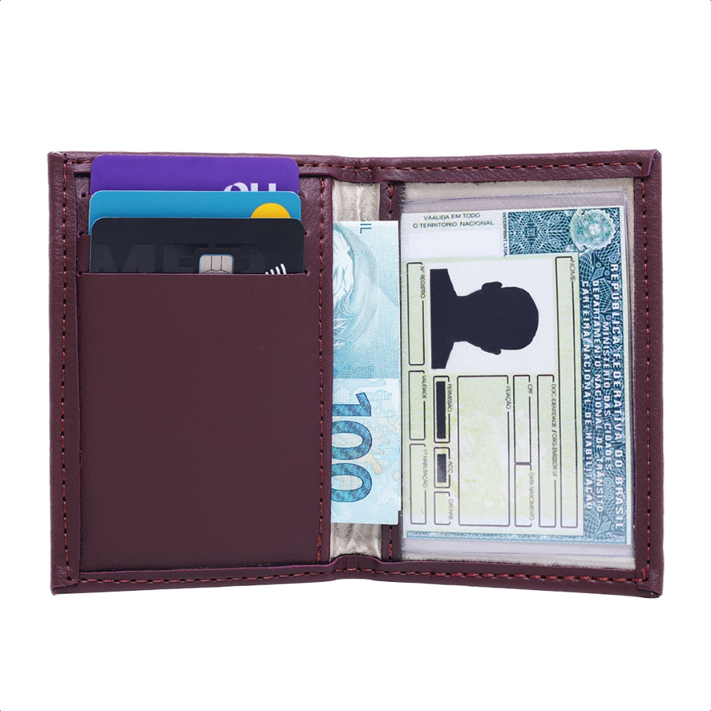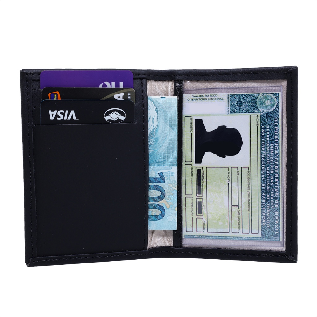 Carteira de Couro Porta Cartões, Porta Documentos RG CNH Cédulas