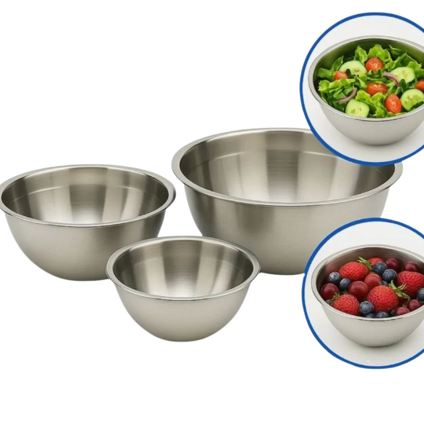 Bowl Inox Tigela Kit 03 Peças Profissional Fundo Grosso Bacia Saladeira Tigela 20cm, 22cm, 26cm