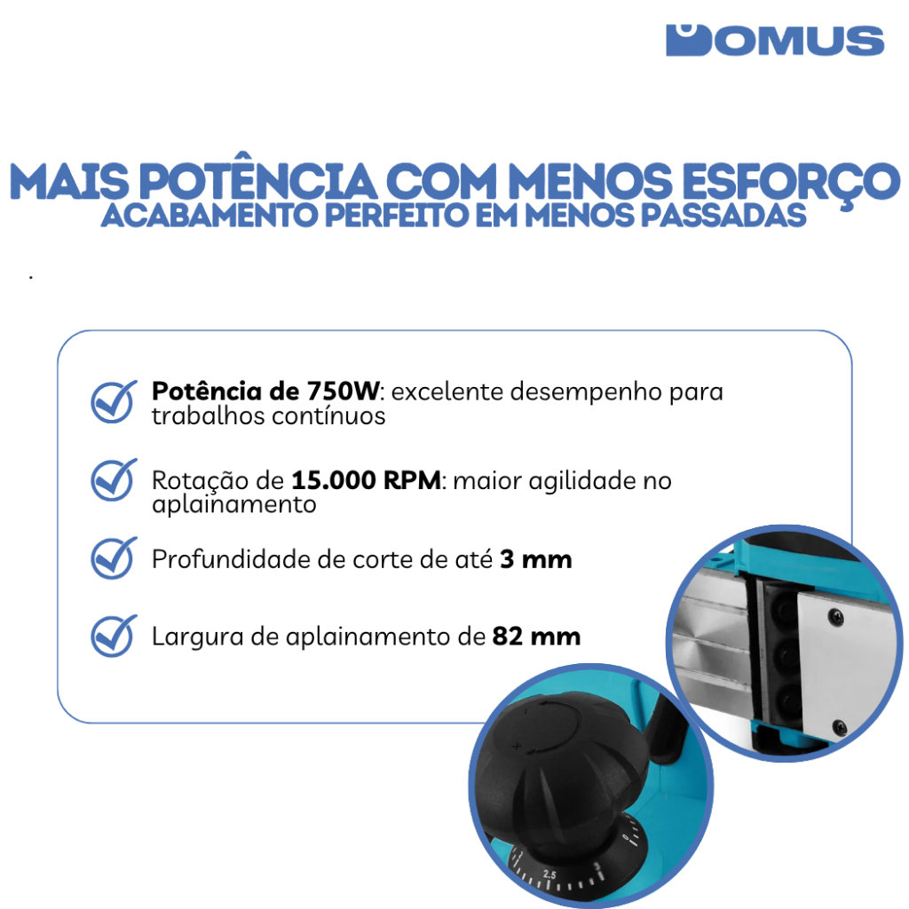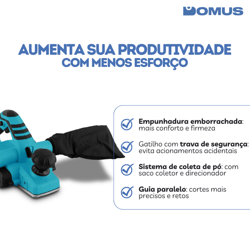 Plaina Elétrica Philco PPL01 Force 750W 82mm 15000RPM com Saco Coletor