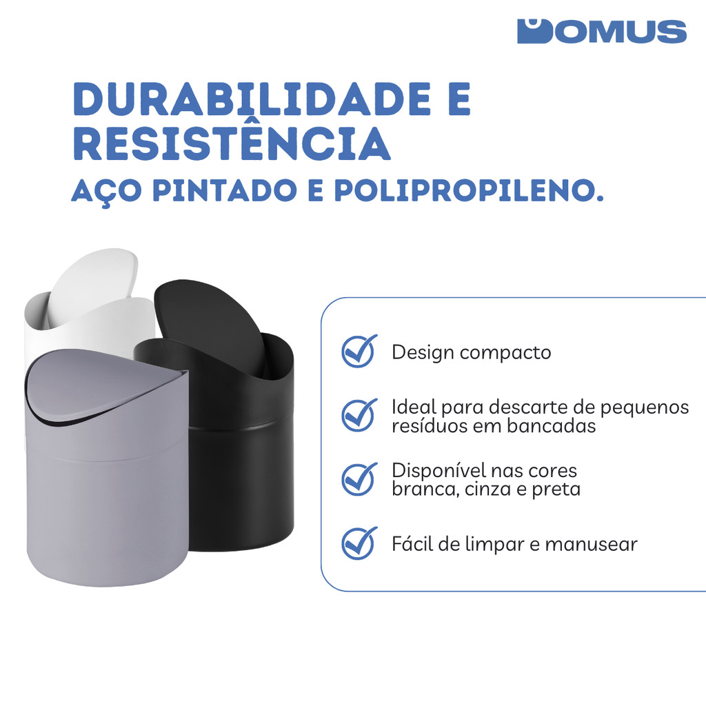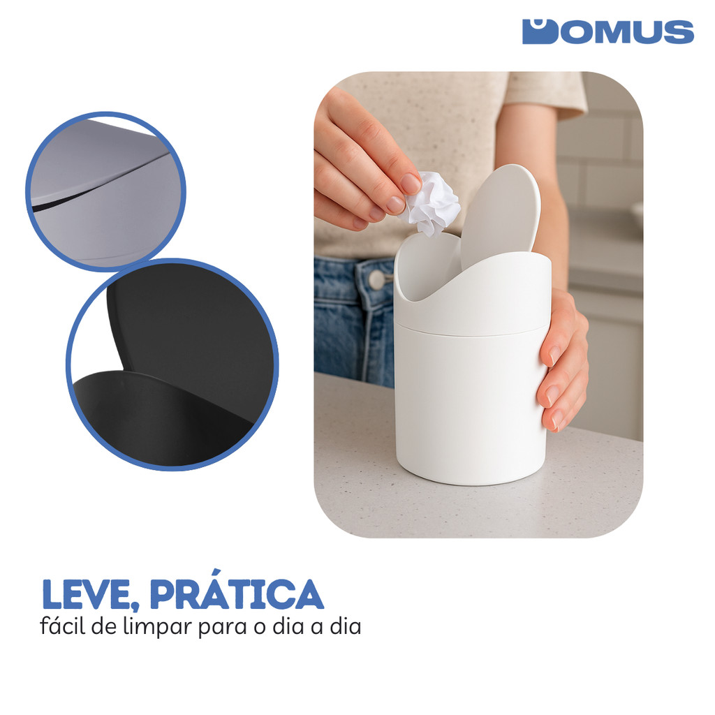 Mini Lixeira De Bancada Basculante Matte Cinza Powermaid