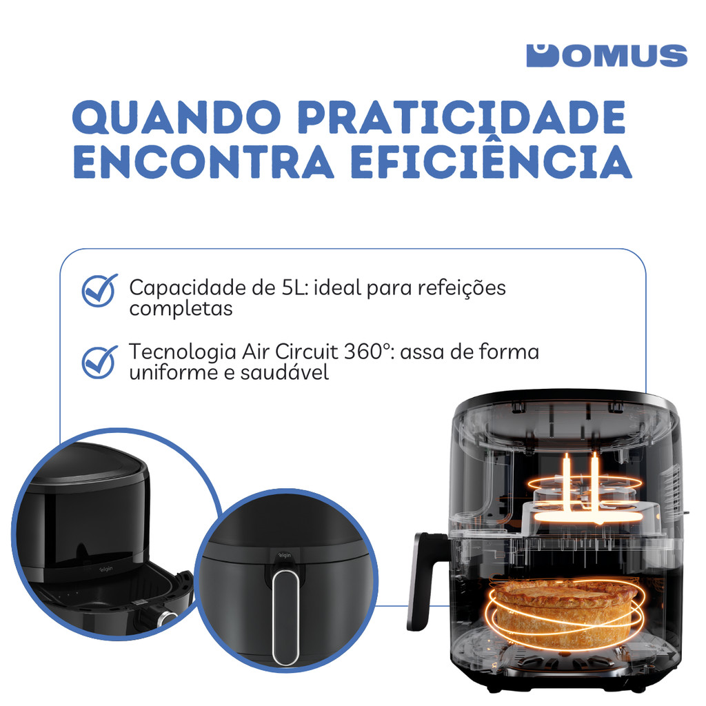 Fritadeira Air Fryer Elgin Vision Fry 5L 1700W com Painel Touch