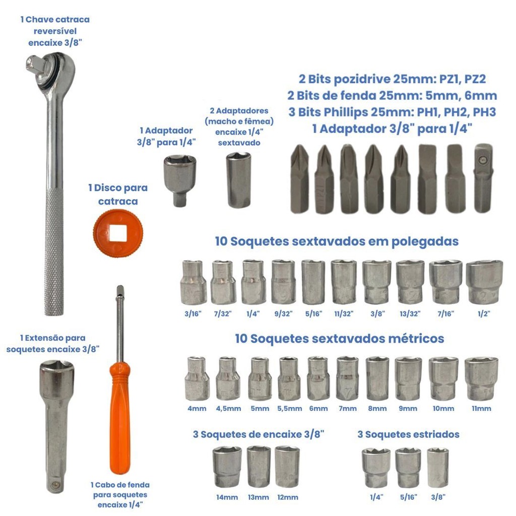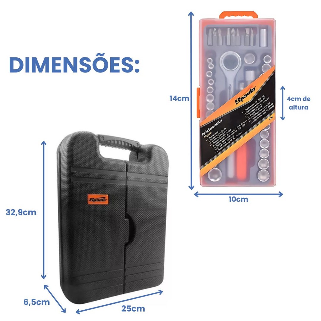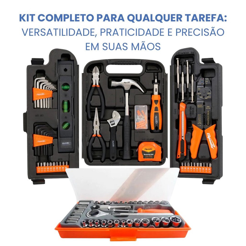Kit Jogo de Ferramentas 129 Pcs e Jogo Soquete 40 Pcs Sparta