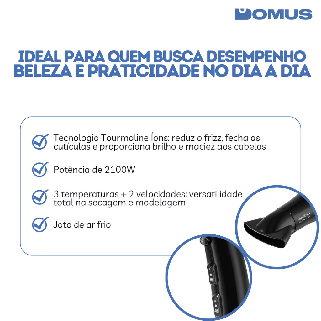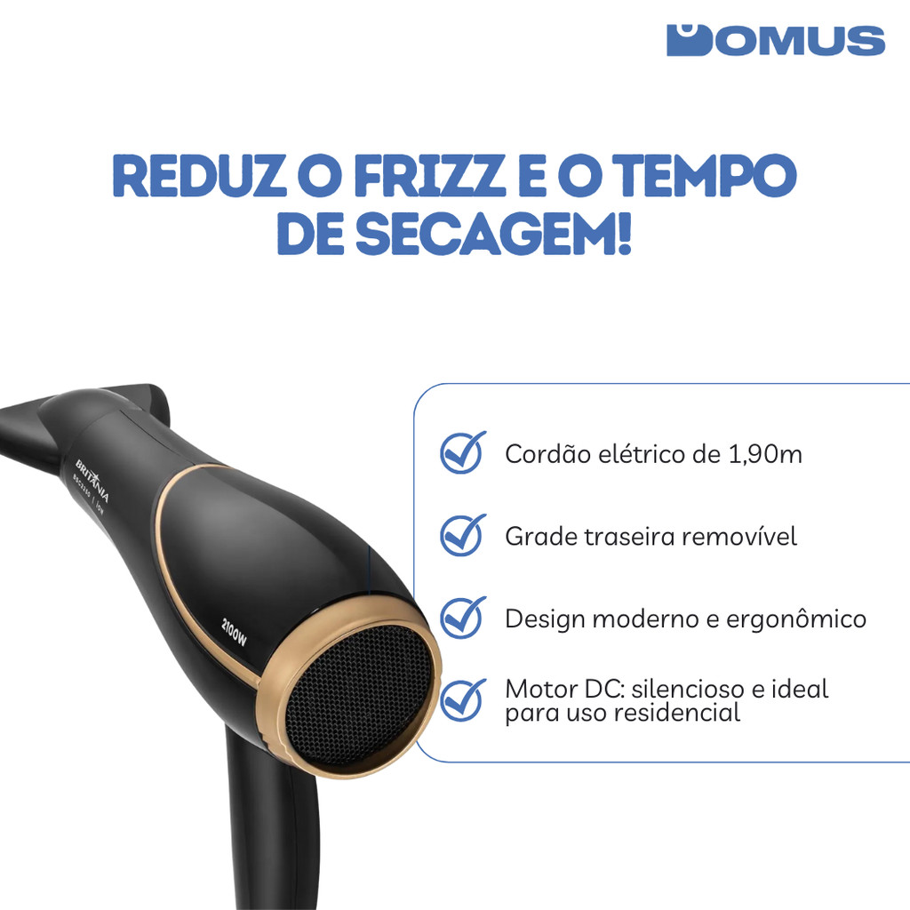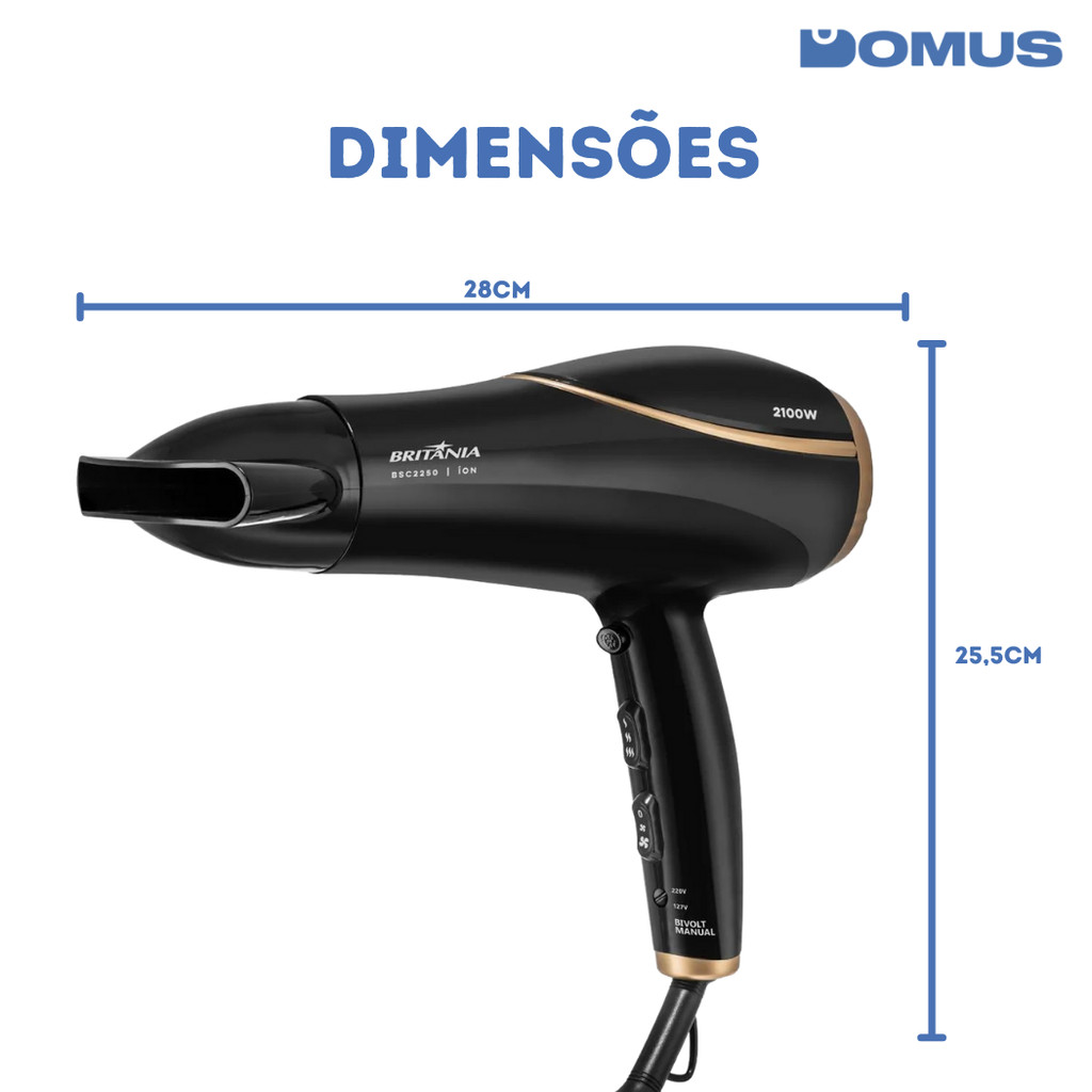Secador de Cabelo Britânia BSC2250 Bivolt 2100W - Potente, Leve e Eficiente