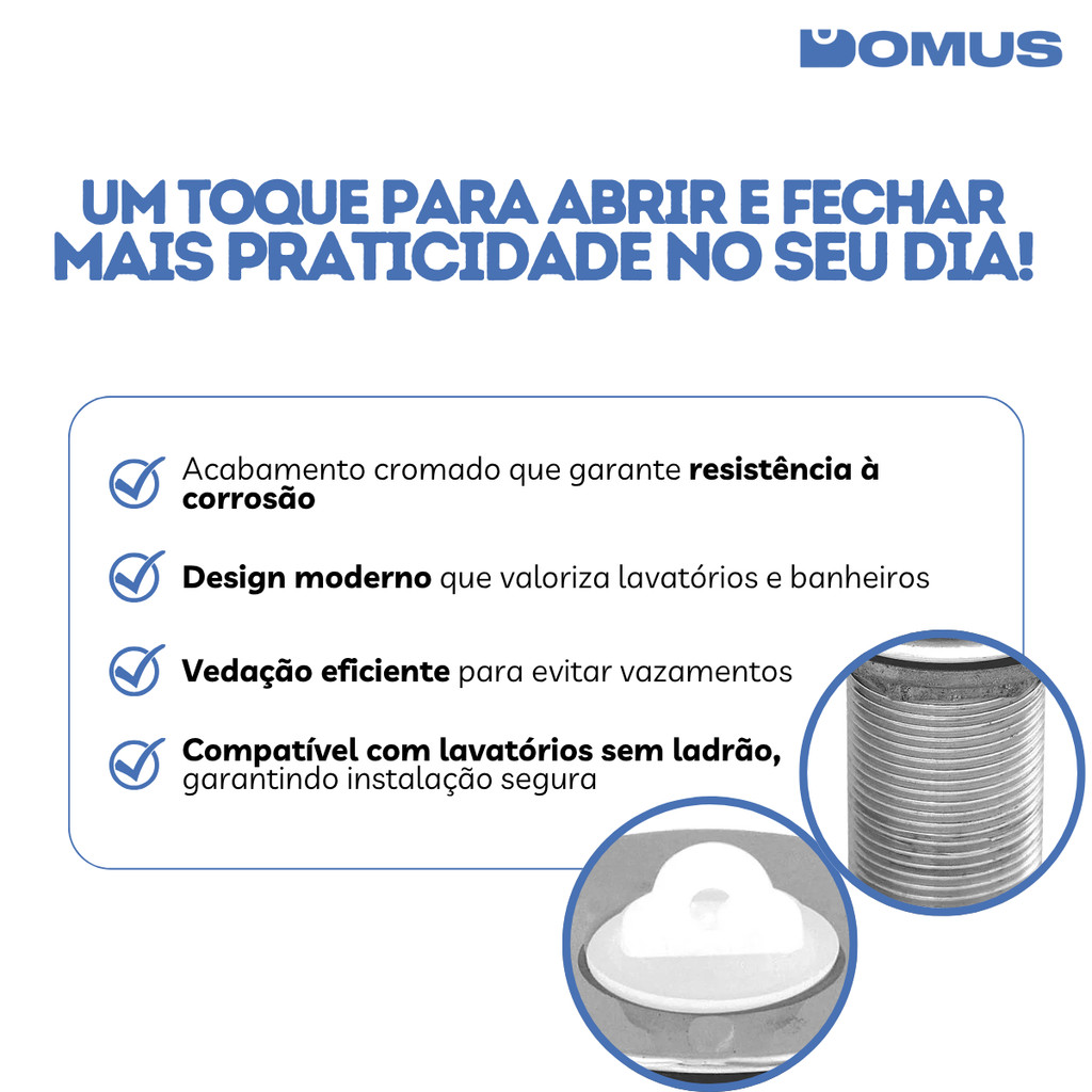 Válvula para Lavatório 1603 Sem Ladrão Cromada Higiban