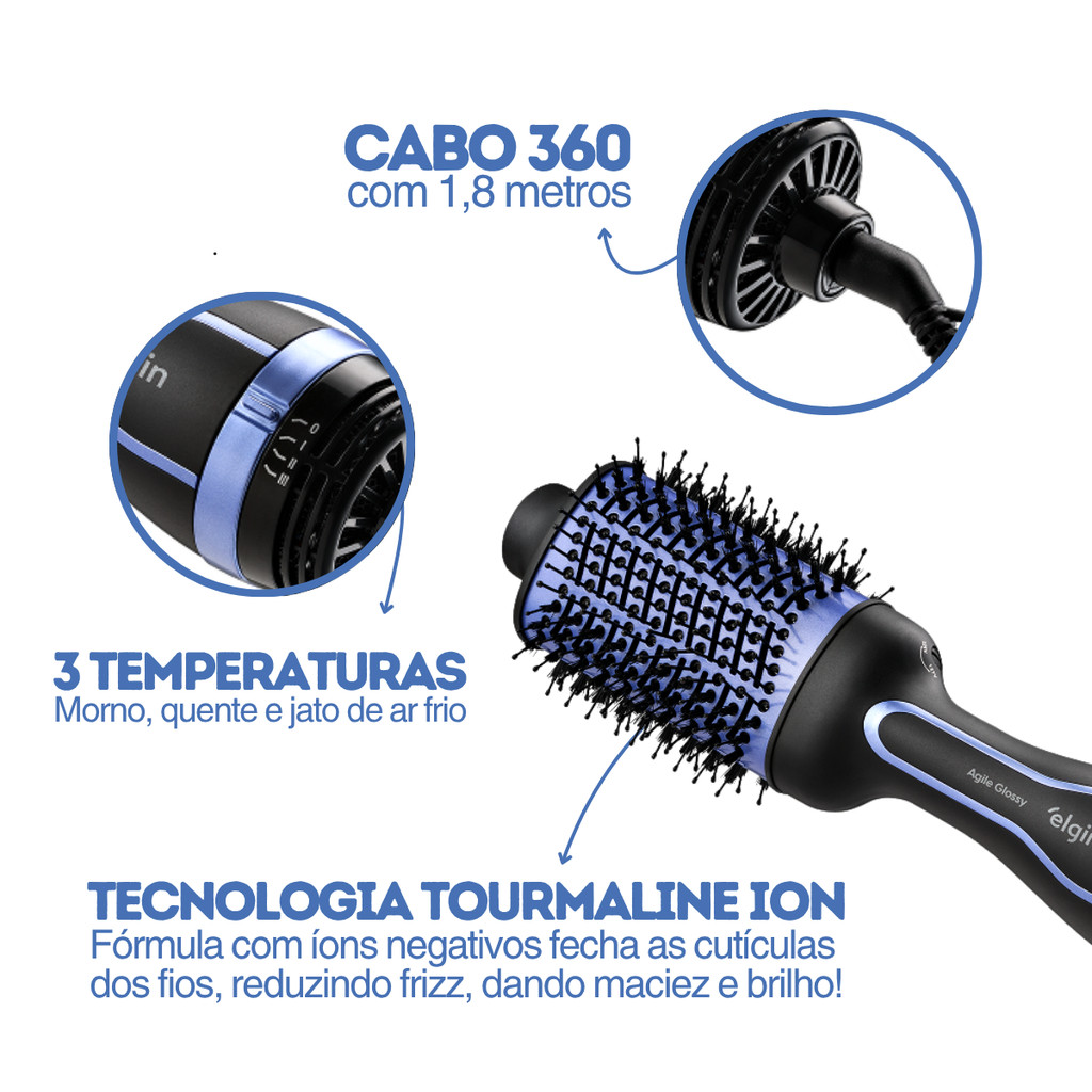 Conjunto Escova Secadora 3 em 1 e Secador de Cabelo Elgin