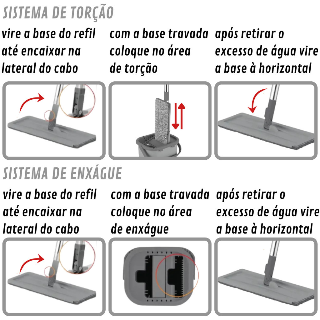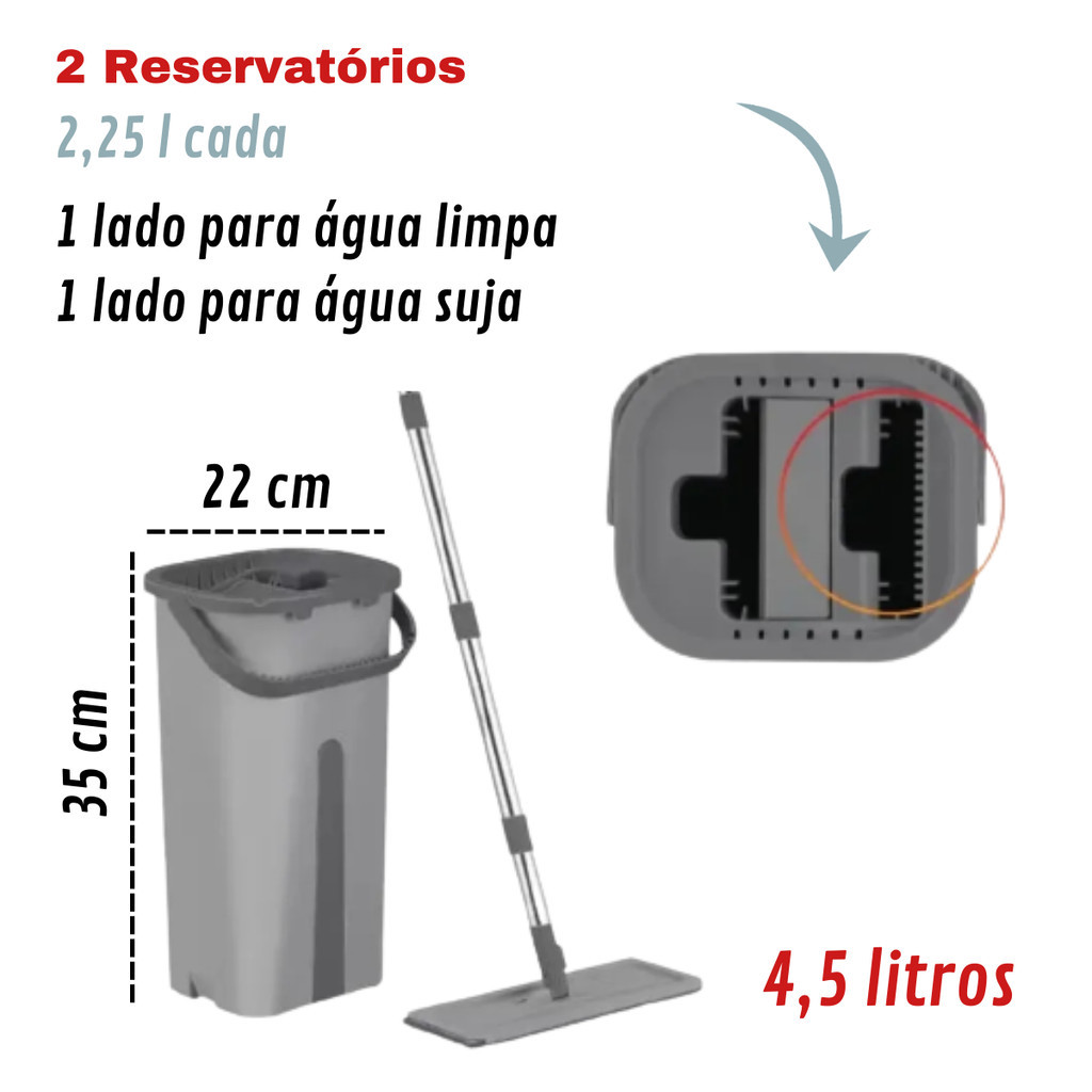 Mop Limpeza Rodo Mágico Giratório Esfregão Balde Flat Flash Powermaid