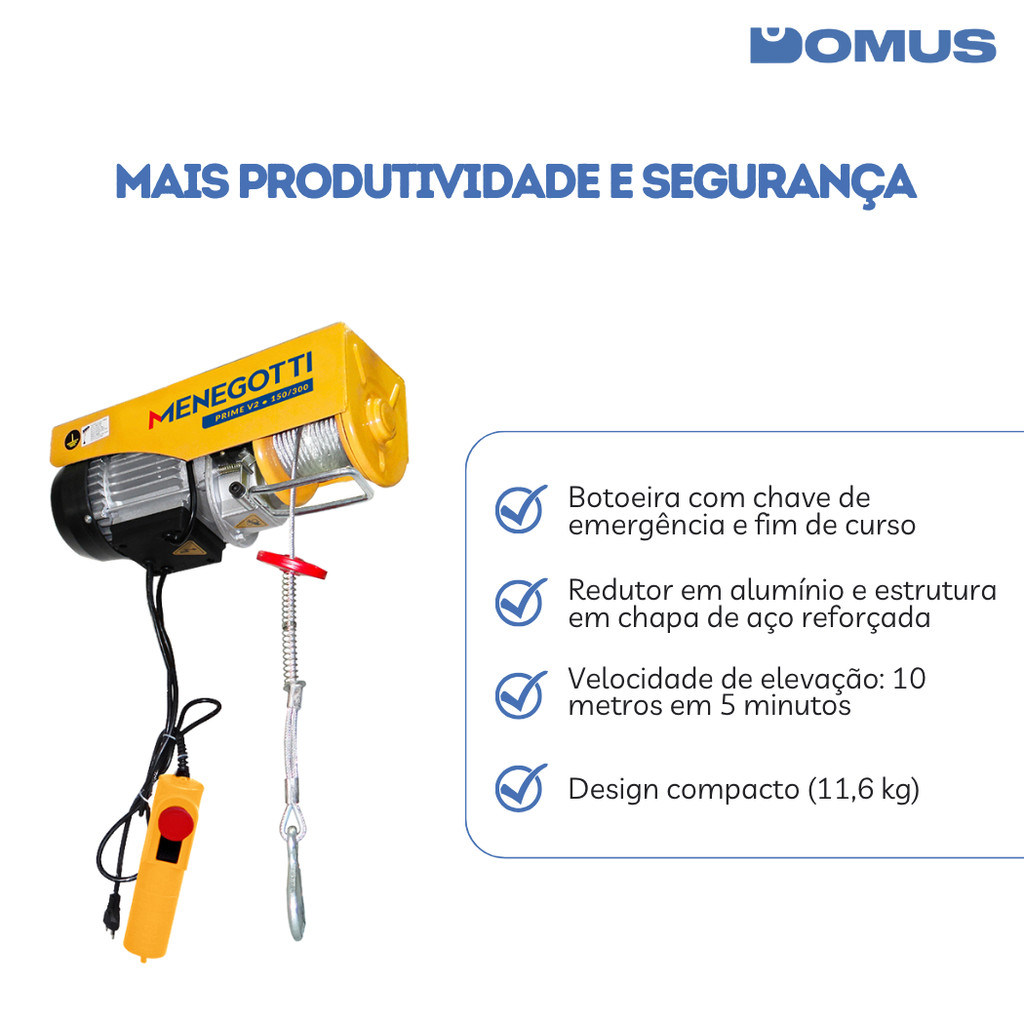 Guincho Elétrico De Coluna Prime V2 150|300 Kg Menegotti