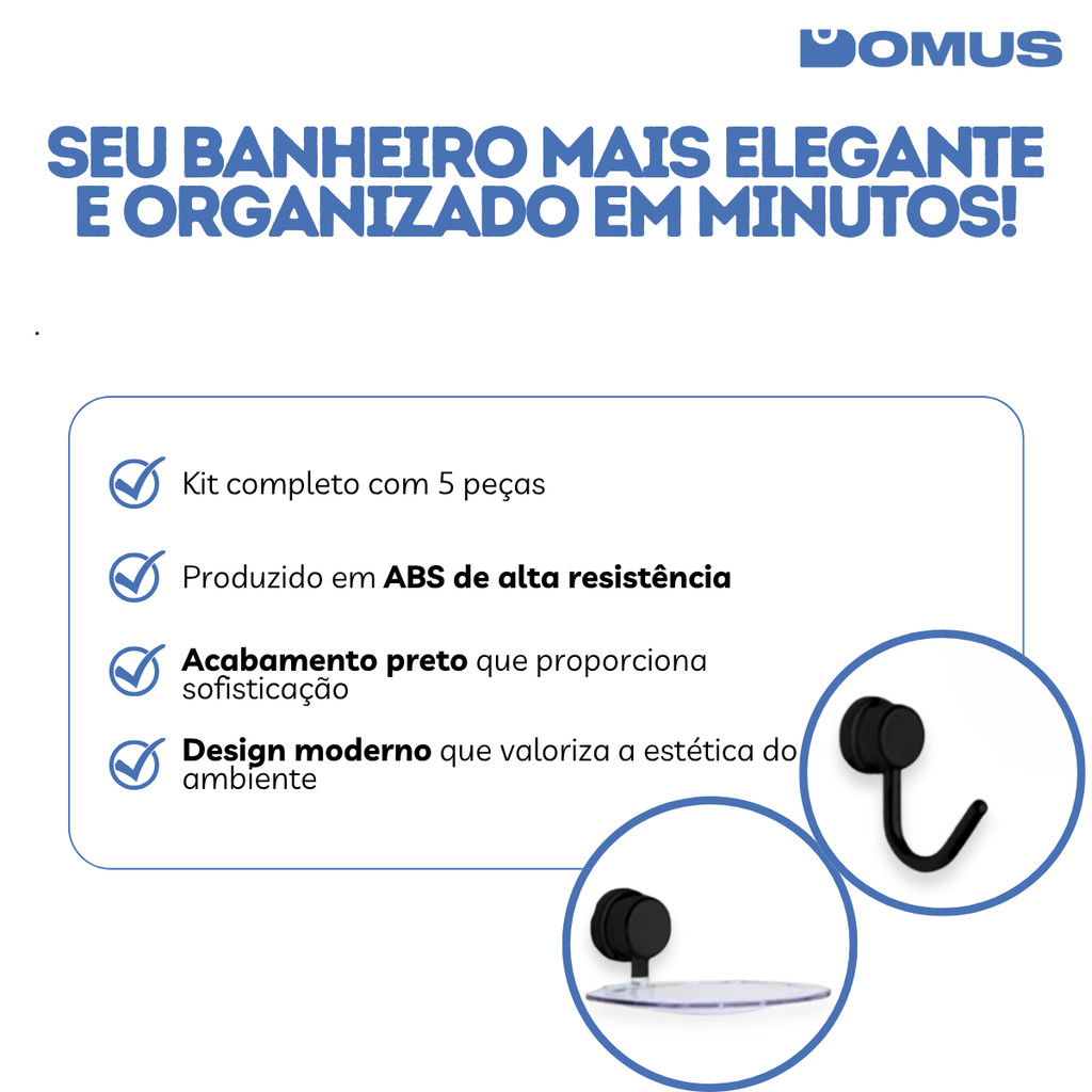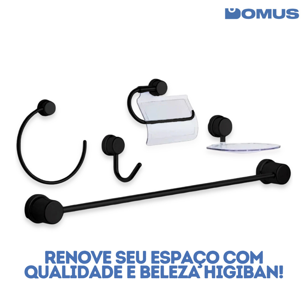 Kit Para Banheiro Rio Black com 5 Peças em ABS Preto Higiban