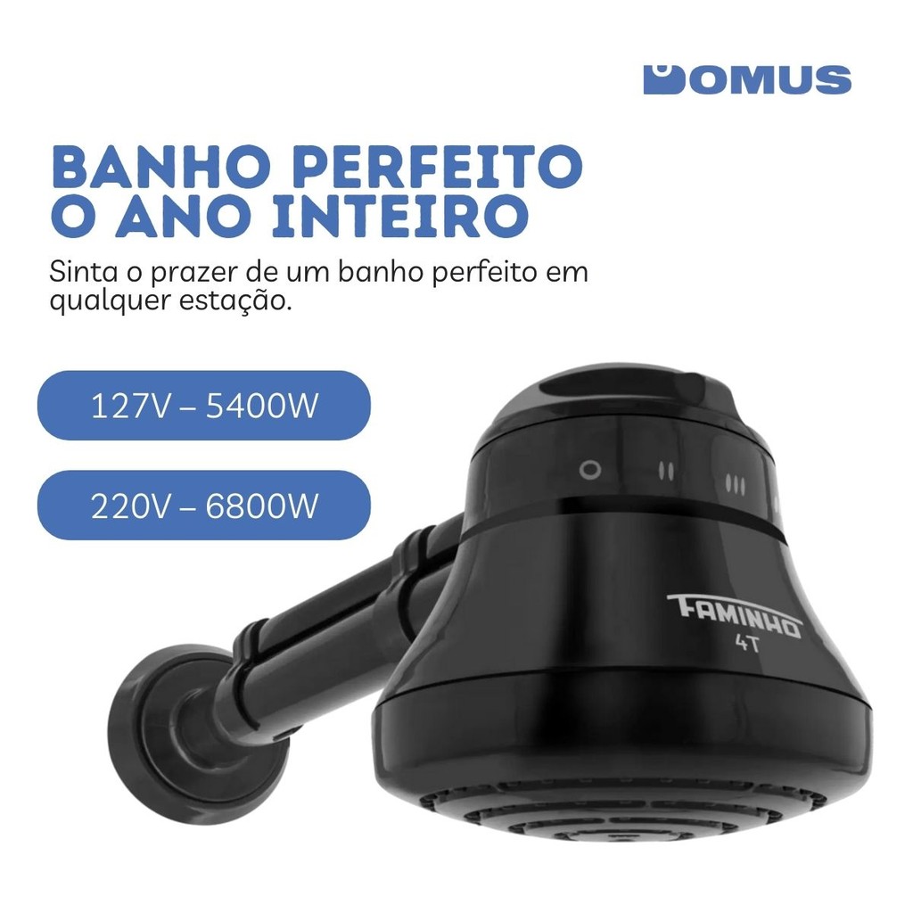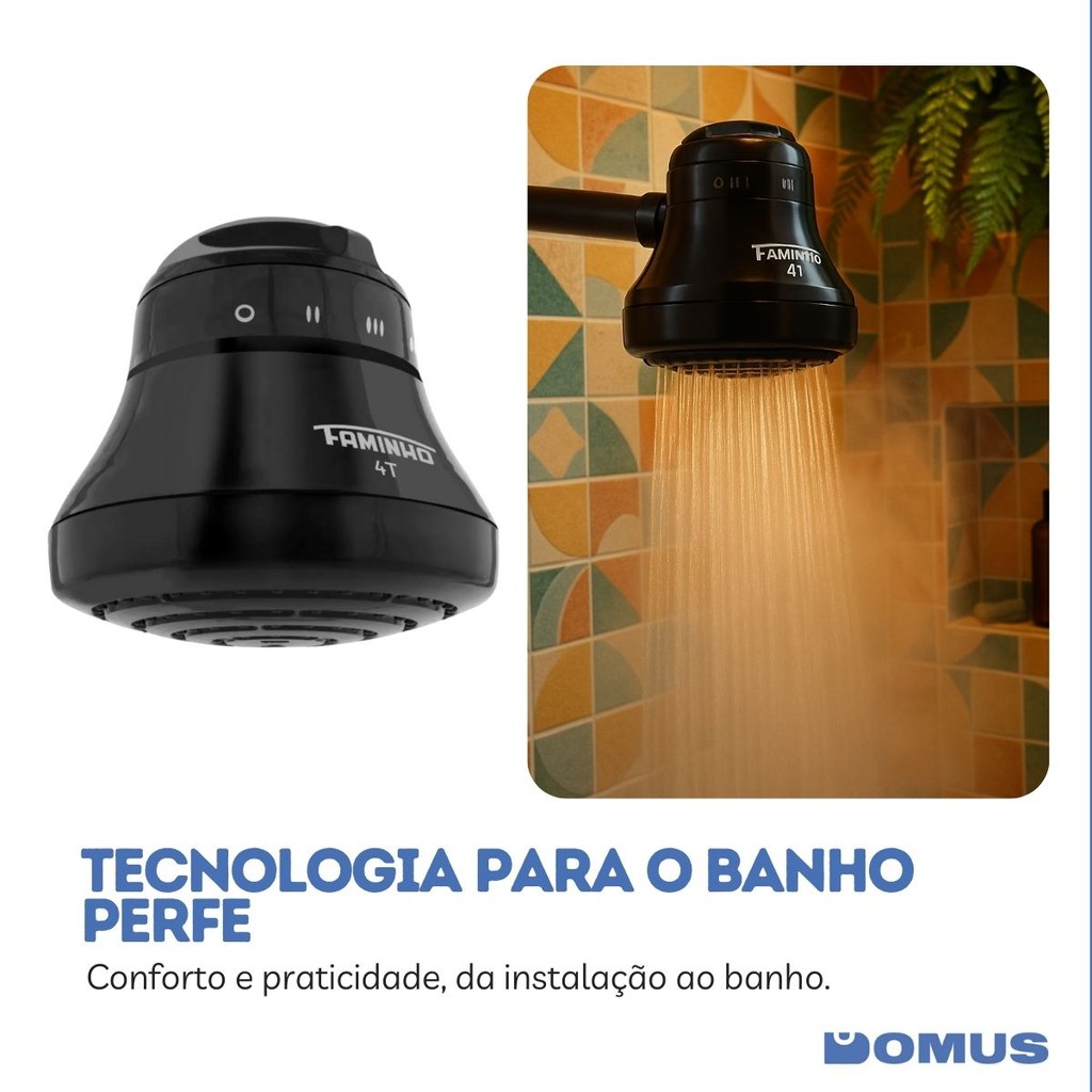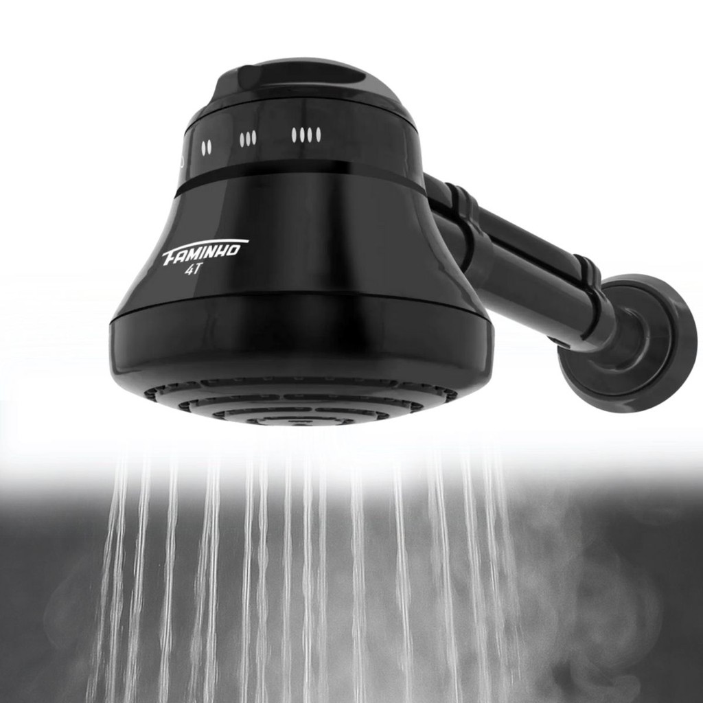 Ducha Chuveiro Elétrico Faminho Fame 4 Temperaturas Preto com Cano 30cm