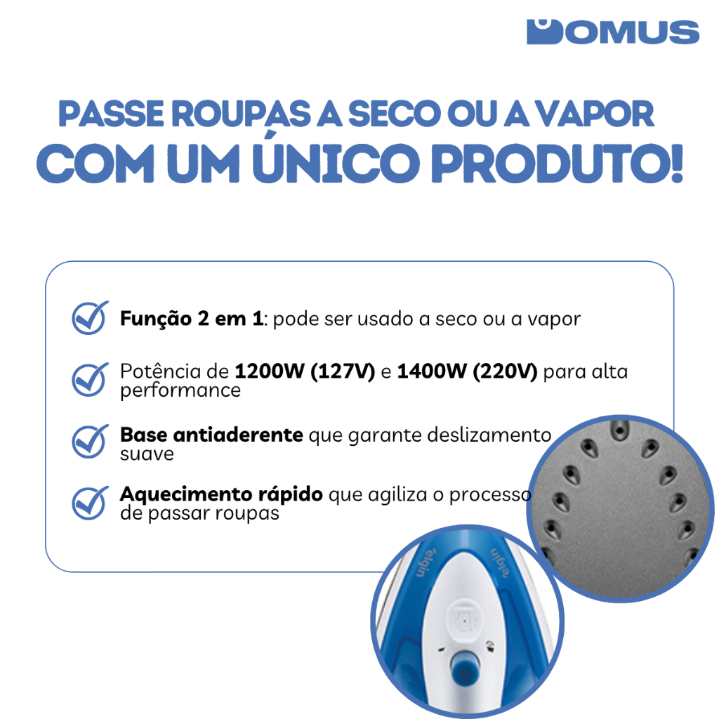 Ferro De Passar 2 em 1 A Vapor e Seco Iron Press 1200W Elgin 127/220V