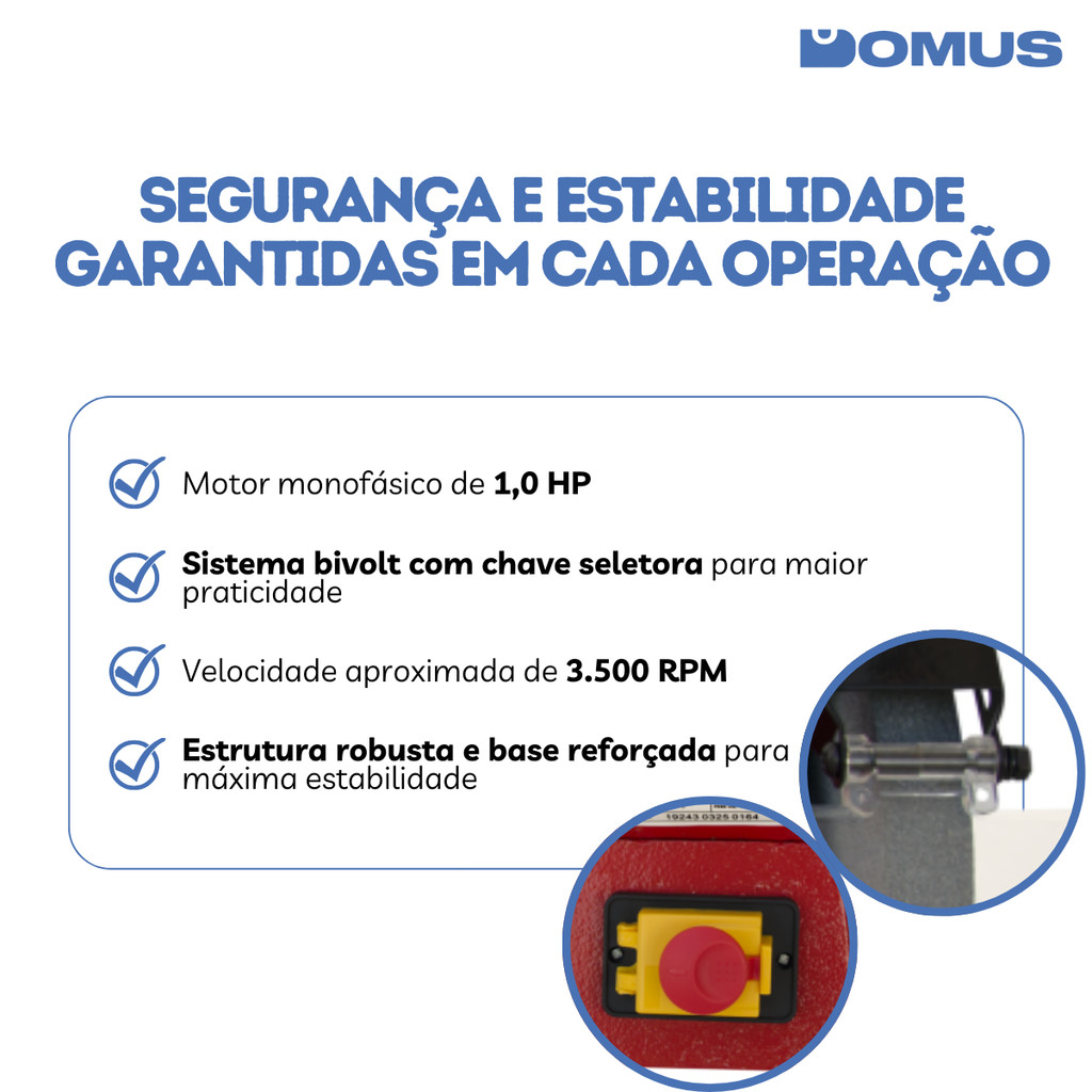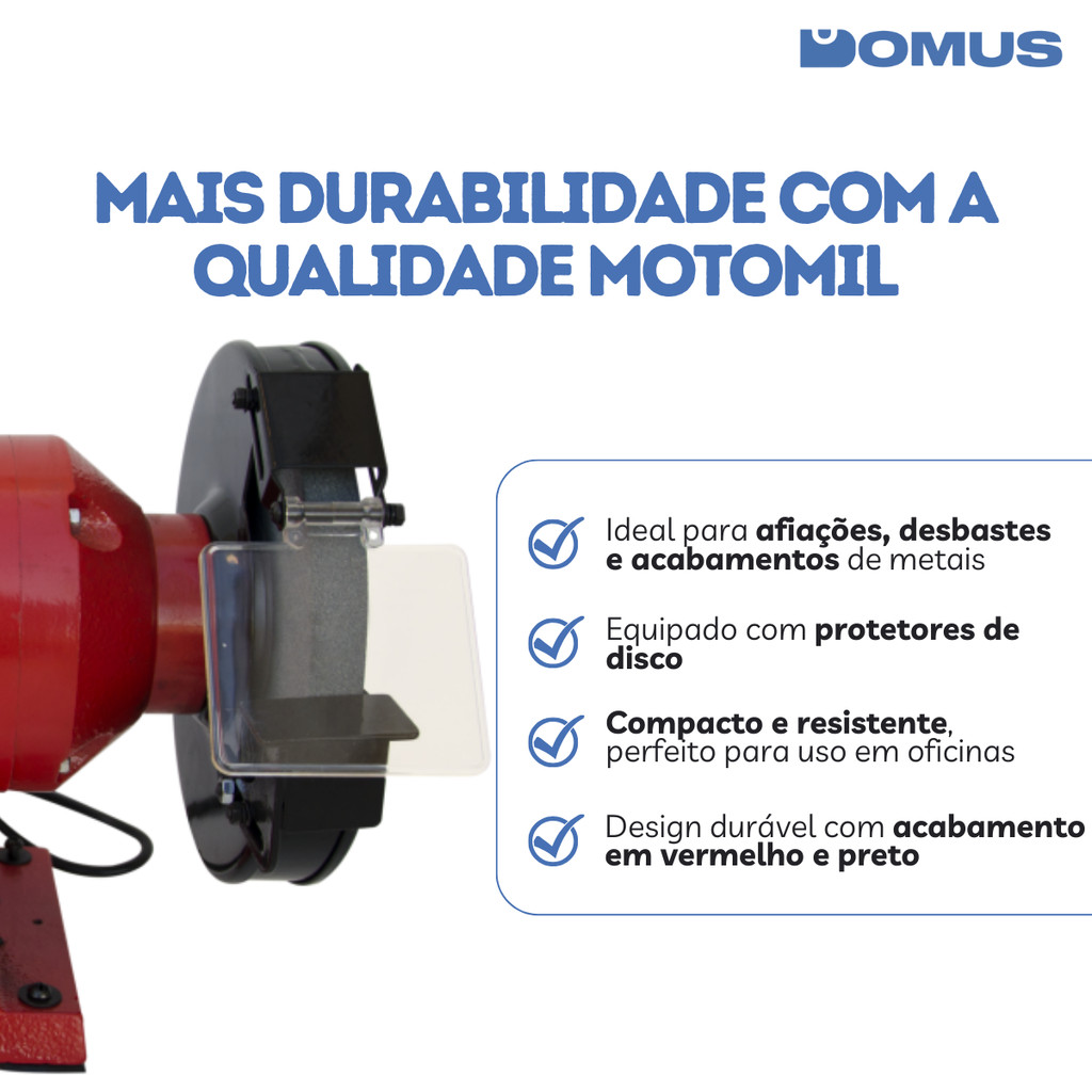 Motoesmeril de Bancada Motomil 1HP 750W Monofásico 127V/220V 60Hz MM-100I