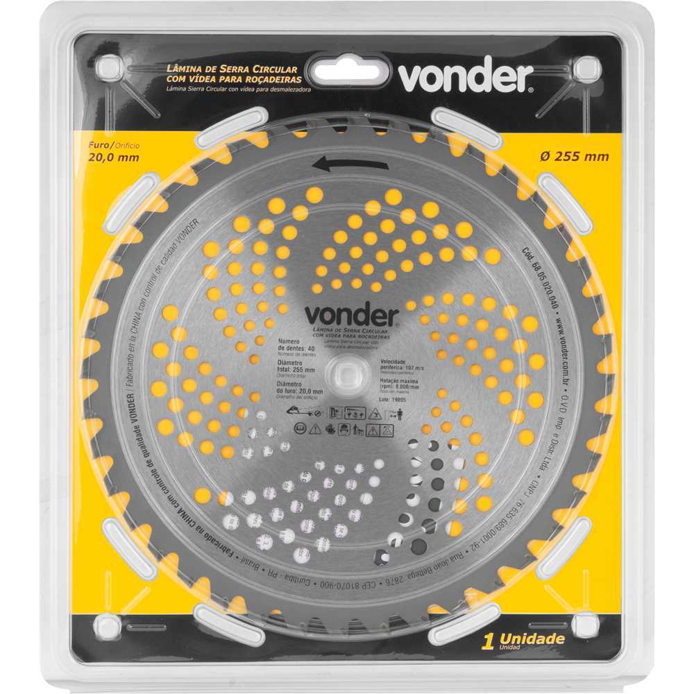 Lâmina Circular C/Vídea Roçadeiras 255x20mm 40 Dentes Vonder