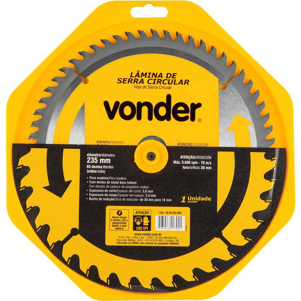 Lâmina de Serra Circular C/ Dentes 235x30mm 60 dentes VONDER