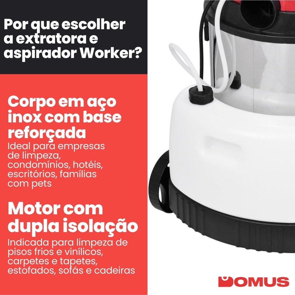 Extratora e Aspirador de Pó 1400W com Tanque Inox 127V/220V + 8 Acessórios Worker
