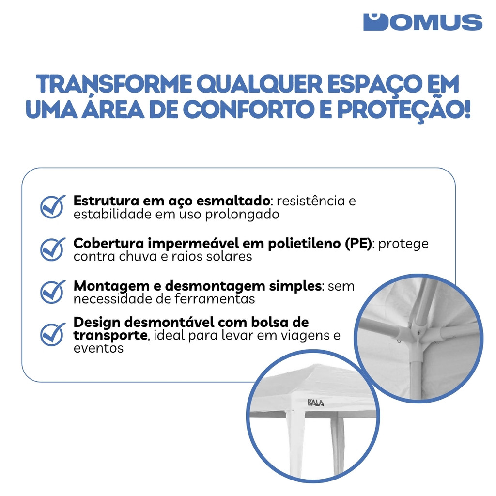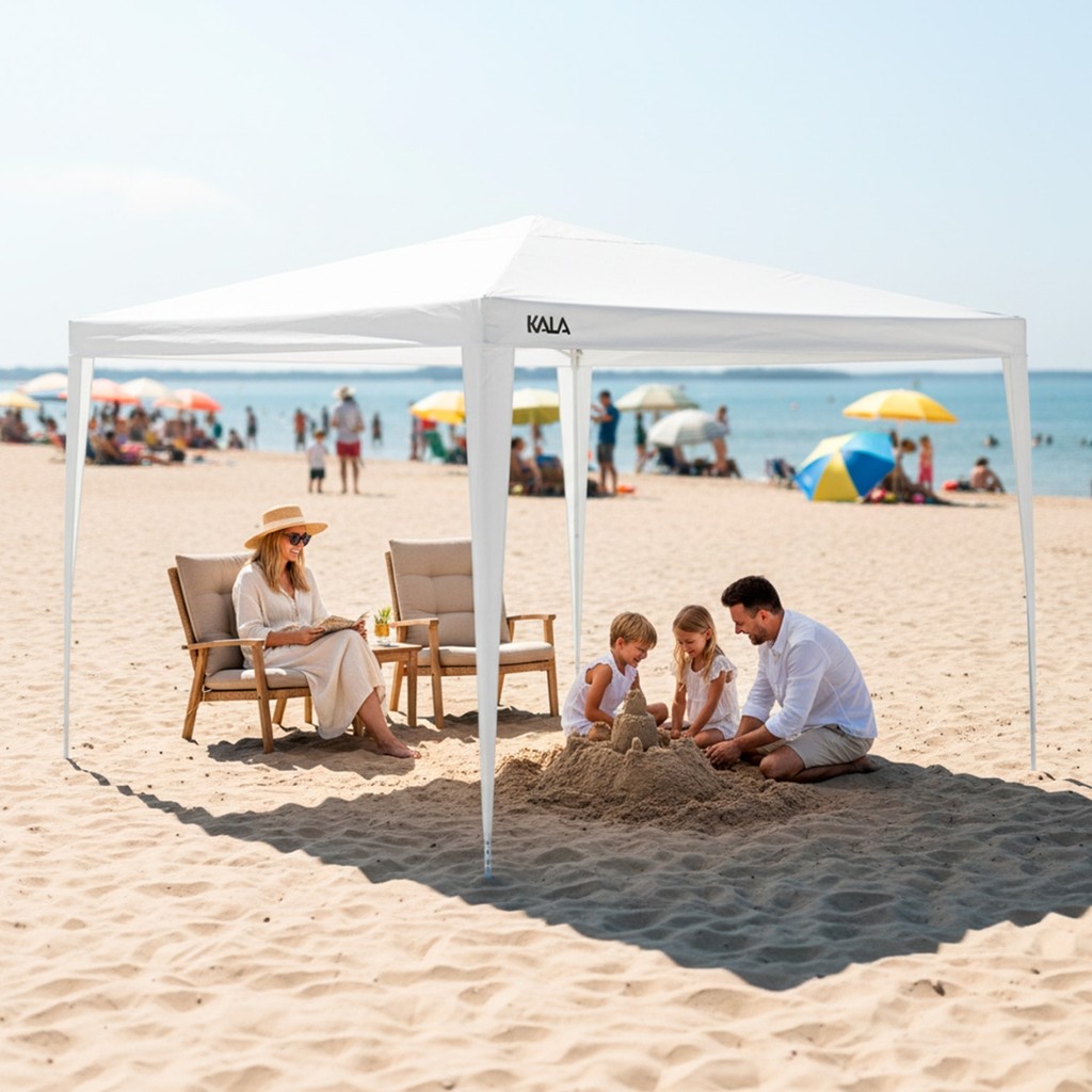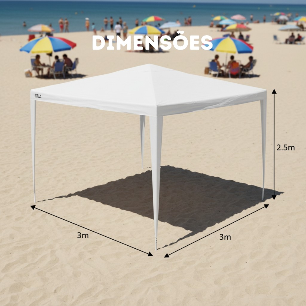 Gazebo 3x3m Desmontável Tenda de Praia Branco Kala