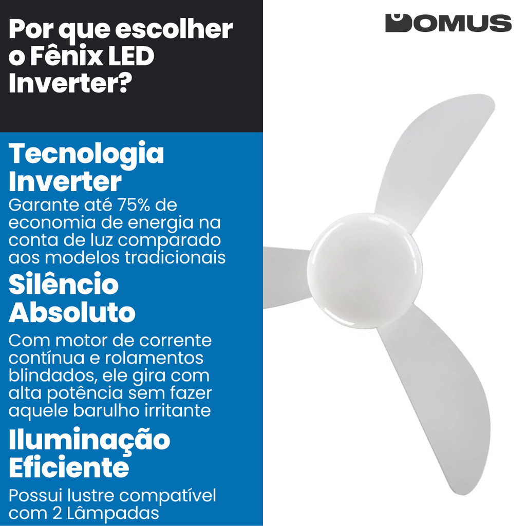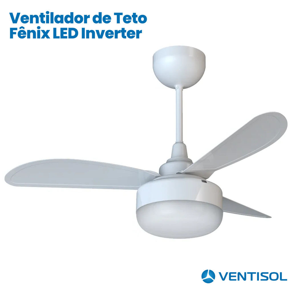 Ventilador de Teto Com Controle Inverter 3 Pás Fênix LED Bivolt Branco Ventisol