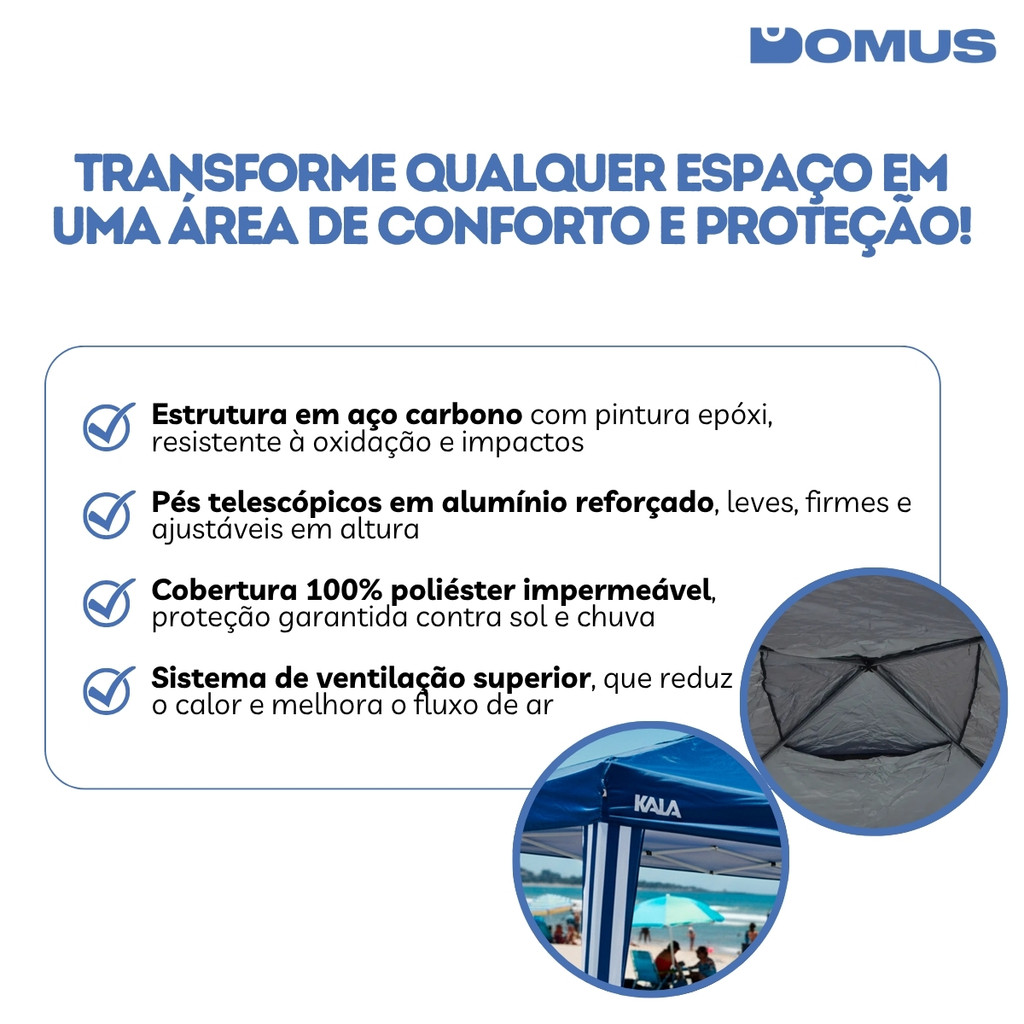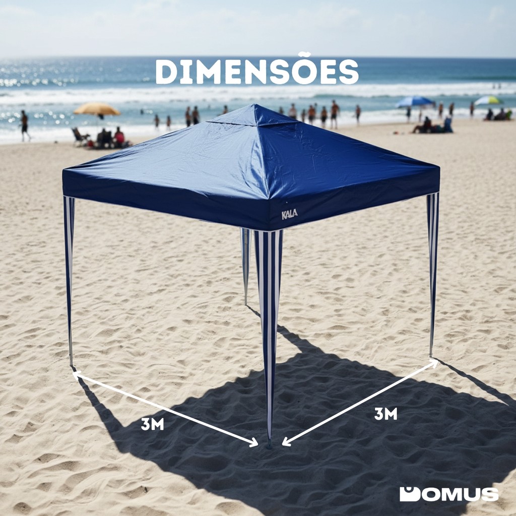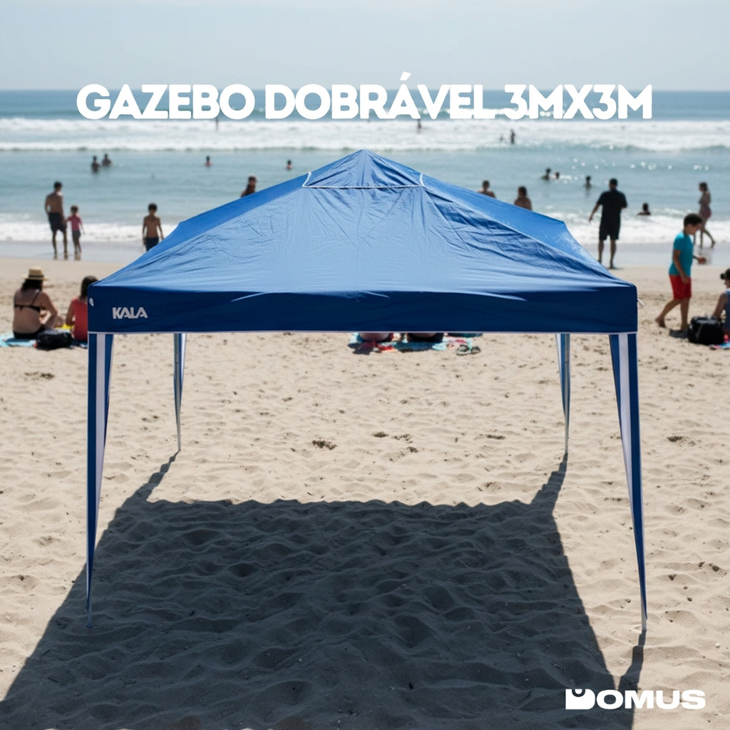 Gazebo Dobrável 3x3m Tenda Azul Estrutura em Aço Carbono Kala