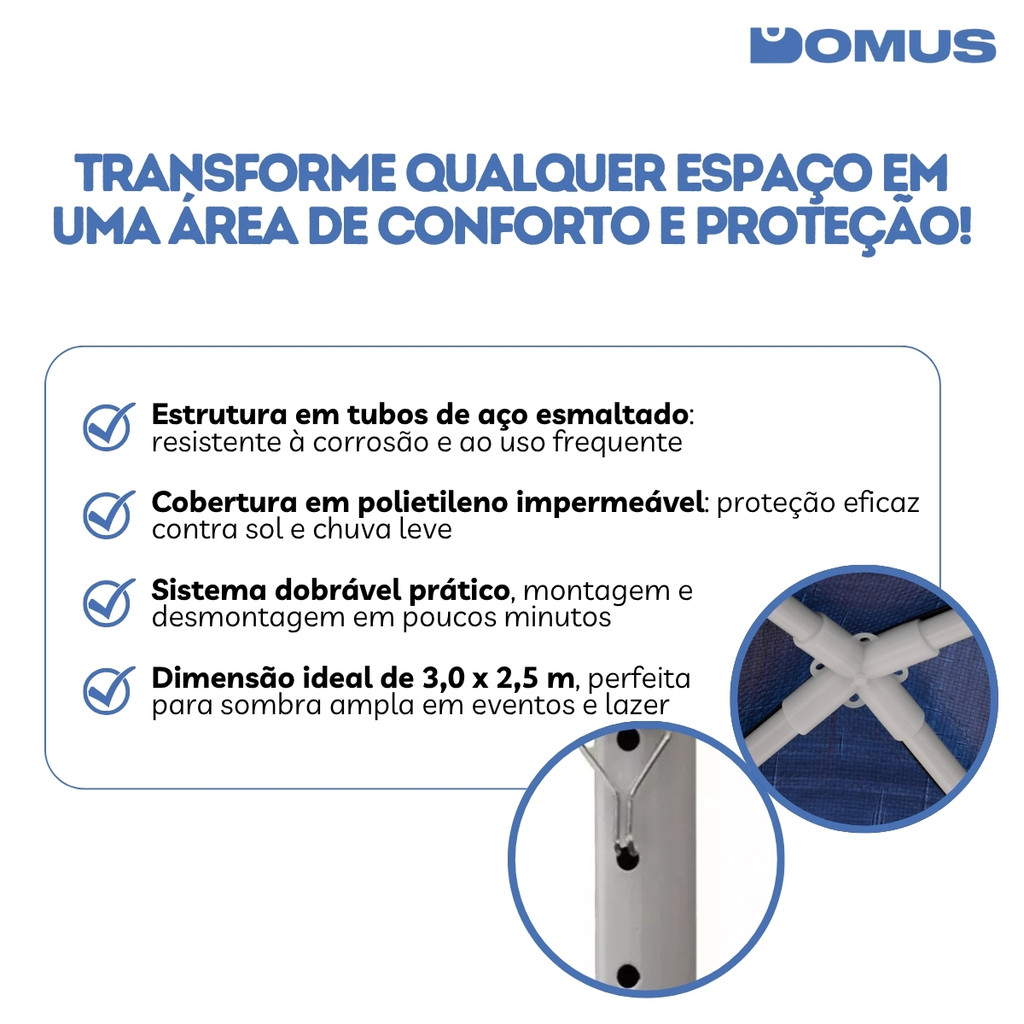 Gazebo Dobrável 3x3m Tenda Impermeável Azul Kala