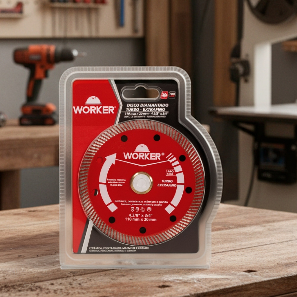Disco Diamantado Turbo Extrafino 110x20mm Porcelanato Worker