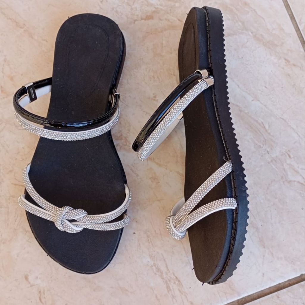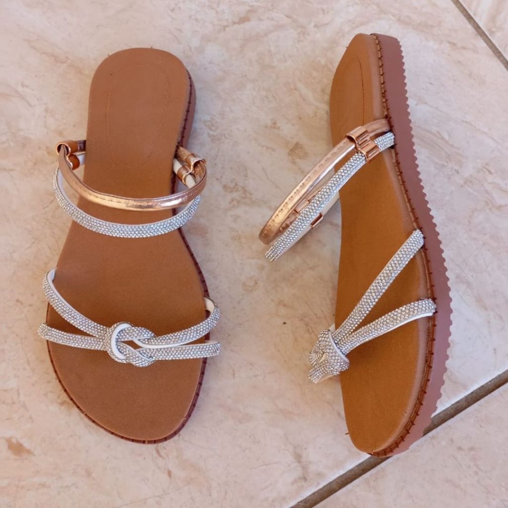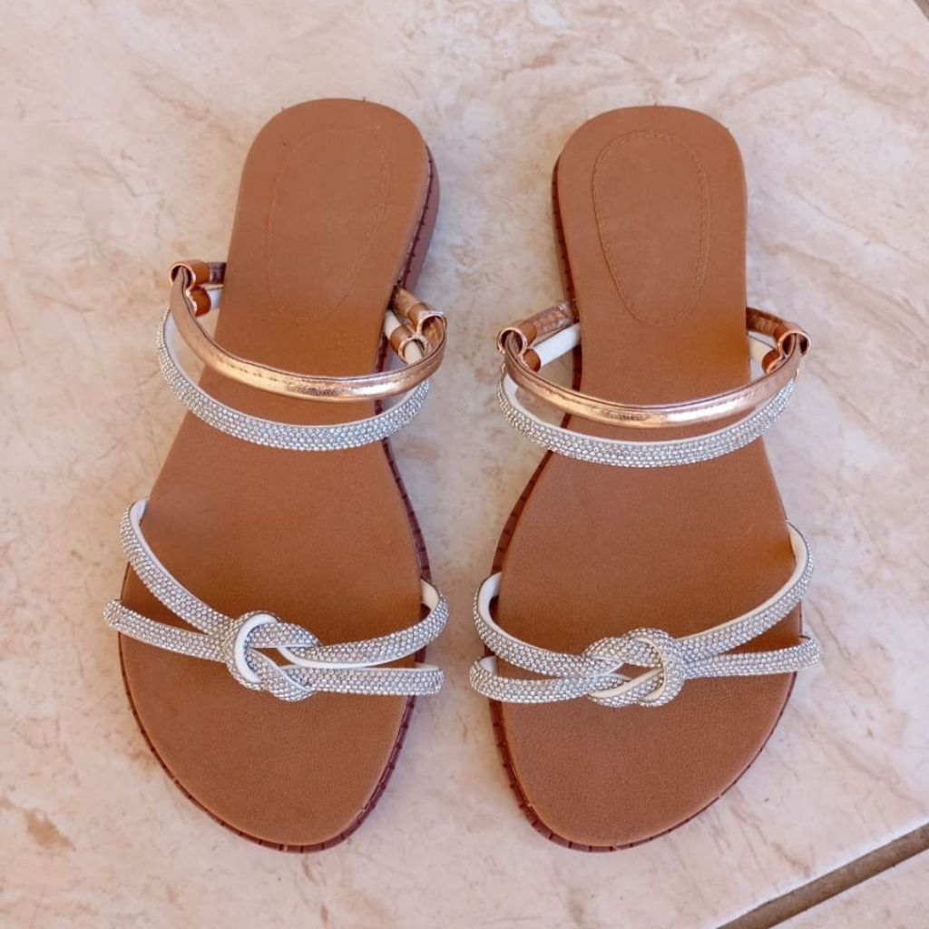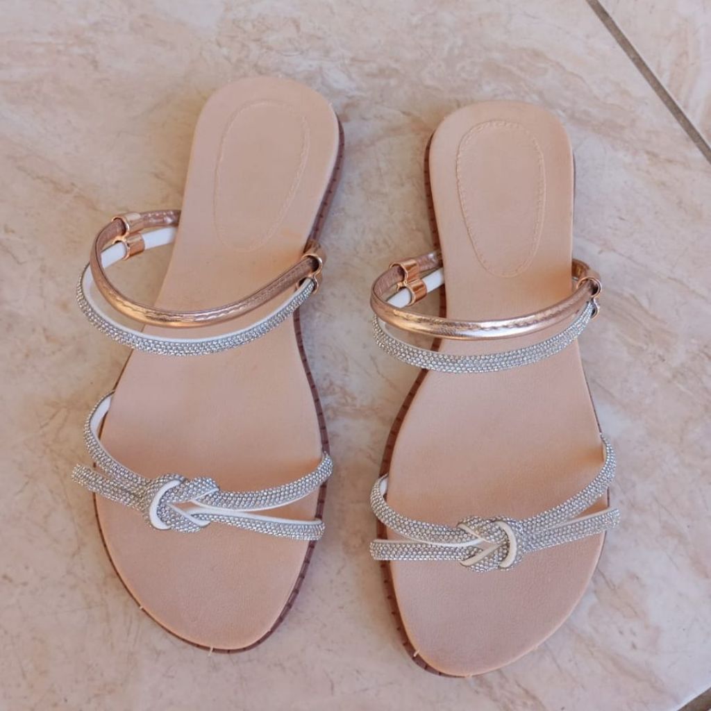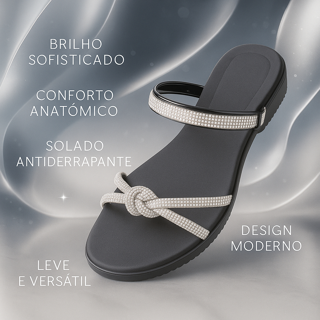 Sandália Plana Confortável Rasteirinha Feminina com Strass