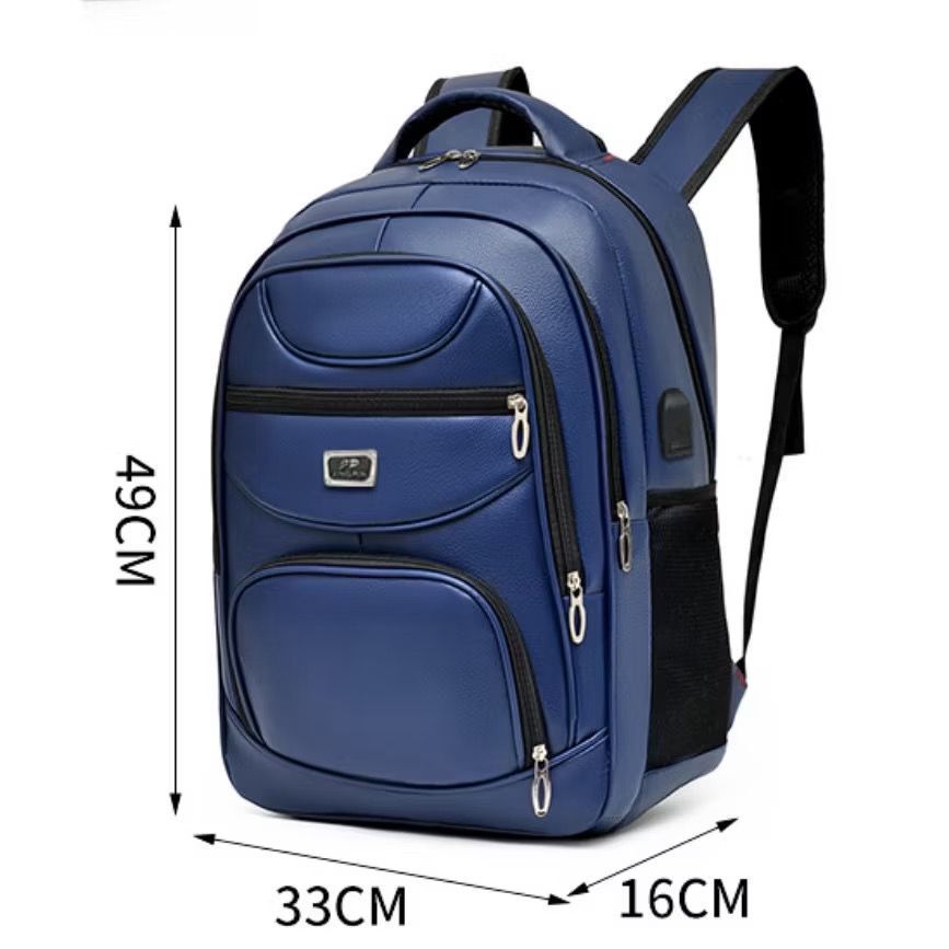Mochila Couro PU Grande Executiva Para Notebook Trabalho Faculdade Reforçada Cabo De Aço