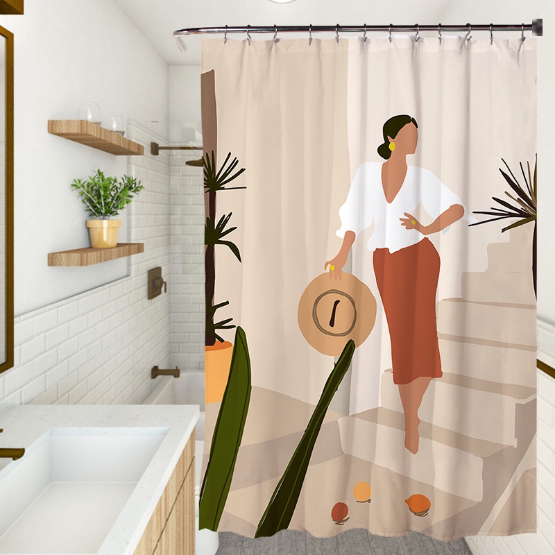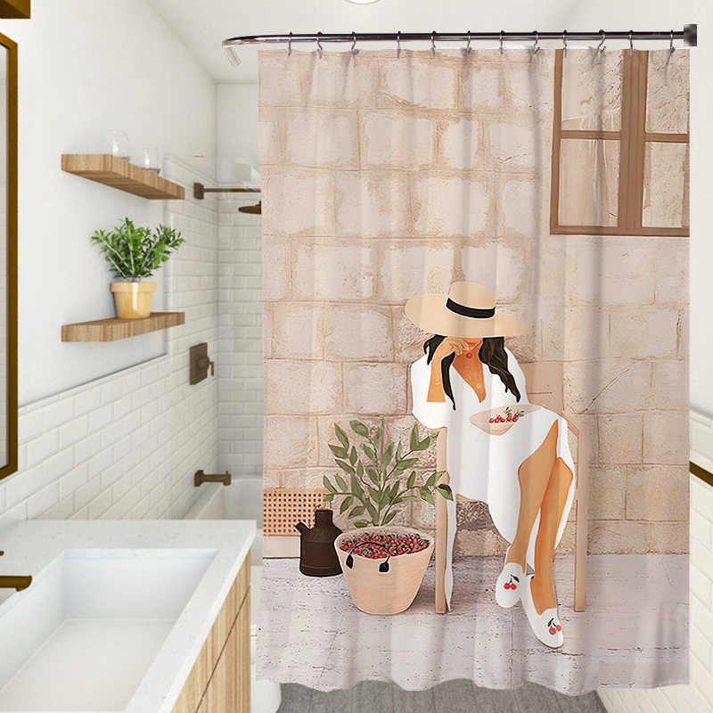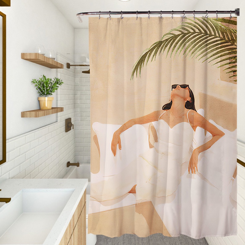 Cortina De Chuveiro Impermeável De Poliéster Com Estampa/Para Partição De Banheiro Somber