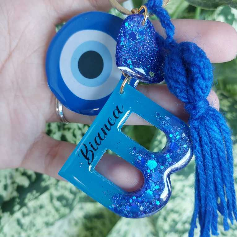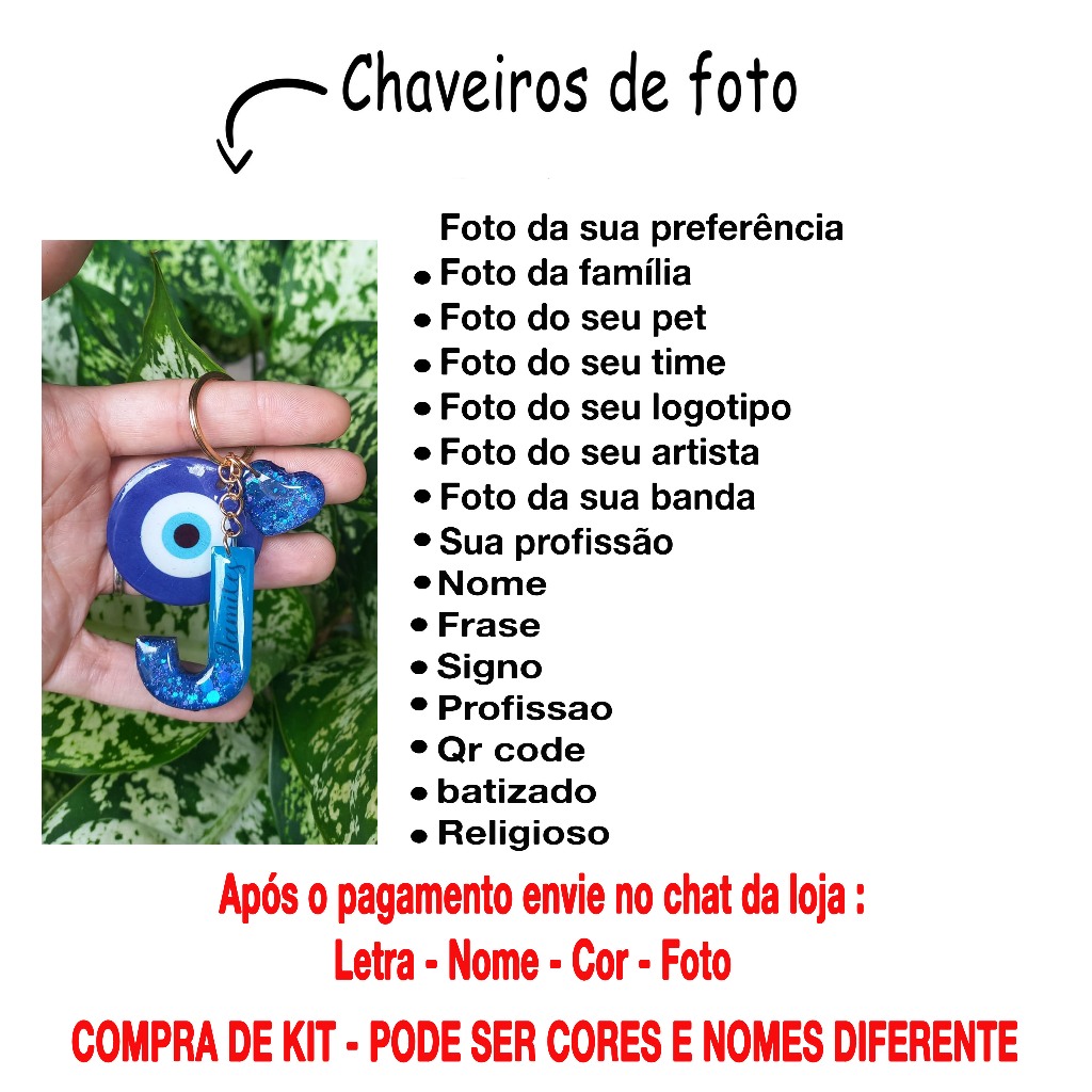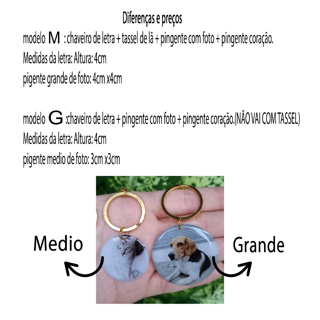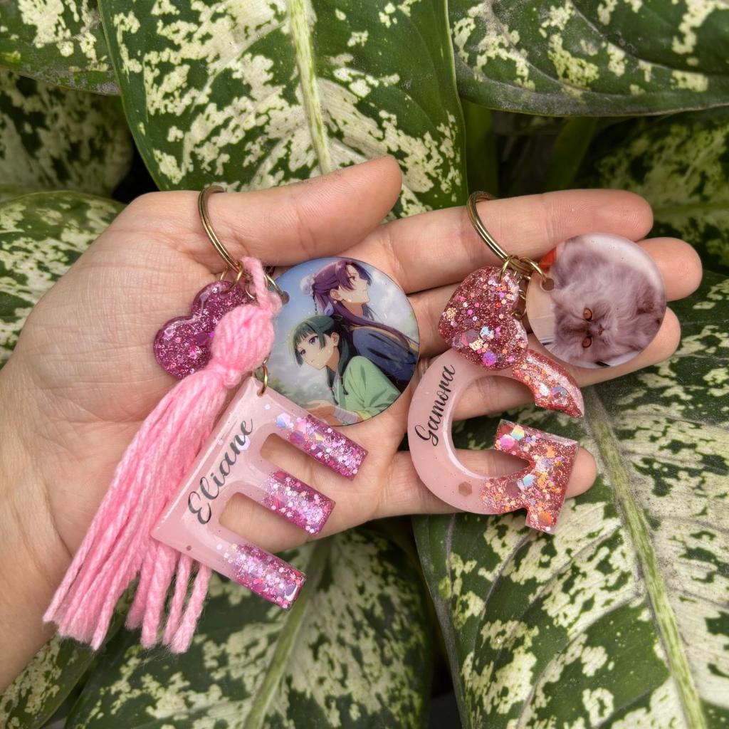 Chaveiro de resina letra personalizado com nome + pingente de foto + pingente coração