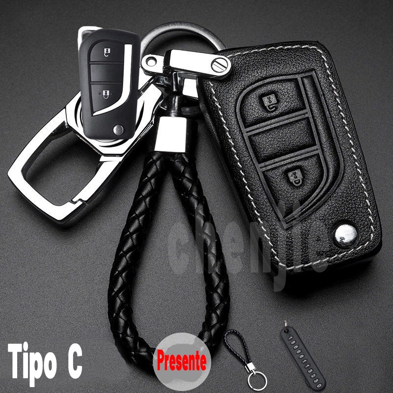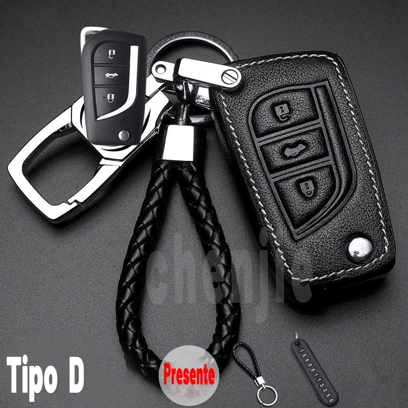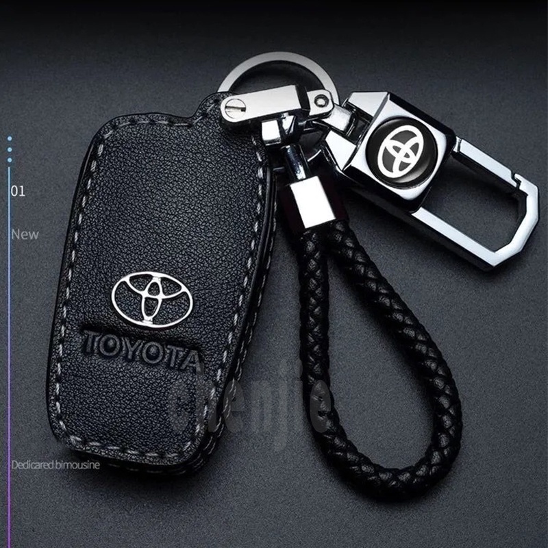 Couro de alta qualidade chave do carro capa/chave de carro protetora capa/Metal chaveiro saco carro Para Toyota