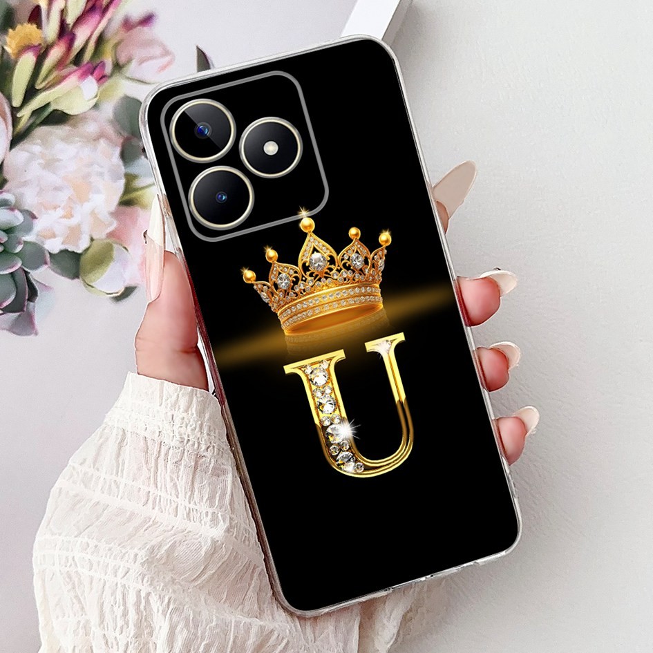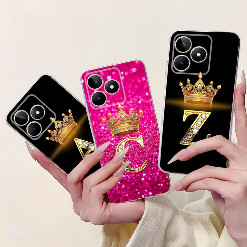 Para Realme Nota 50 Caso RMX3834 Capa De Luxo Coroa Letras Silicone Macio Claro TPU Telefone C51 C53 Note50 4G Embalagem