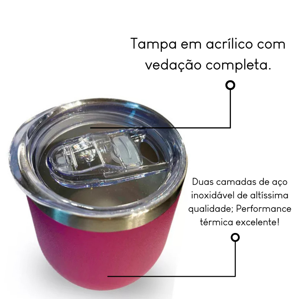 Mini Copo Cuia Térmico Em Aço Inoxidável Tampa Flip Flop 350ml + Personalização Nome Frase Time Log