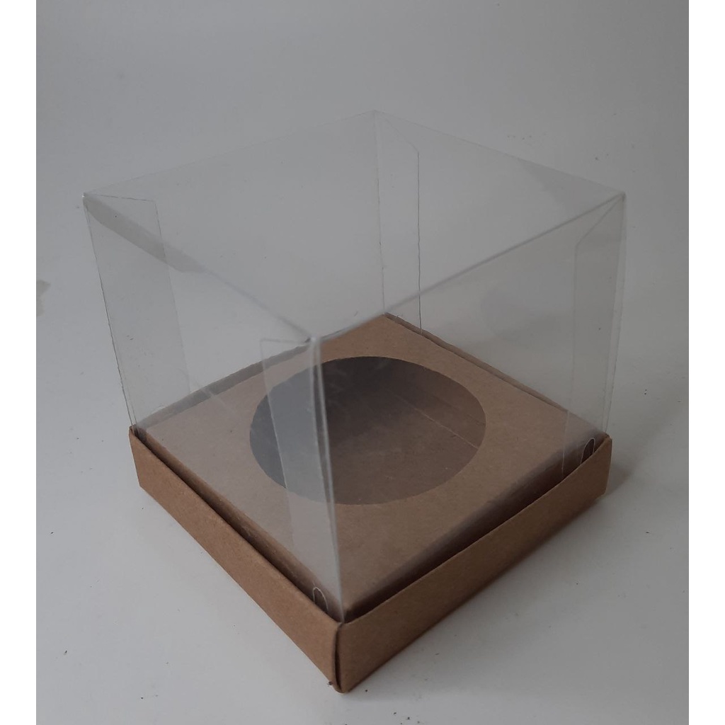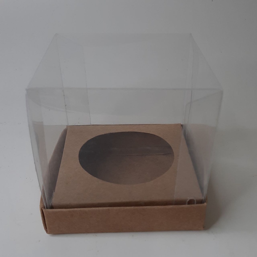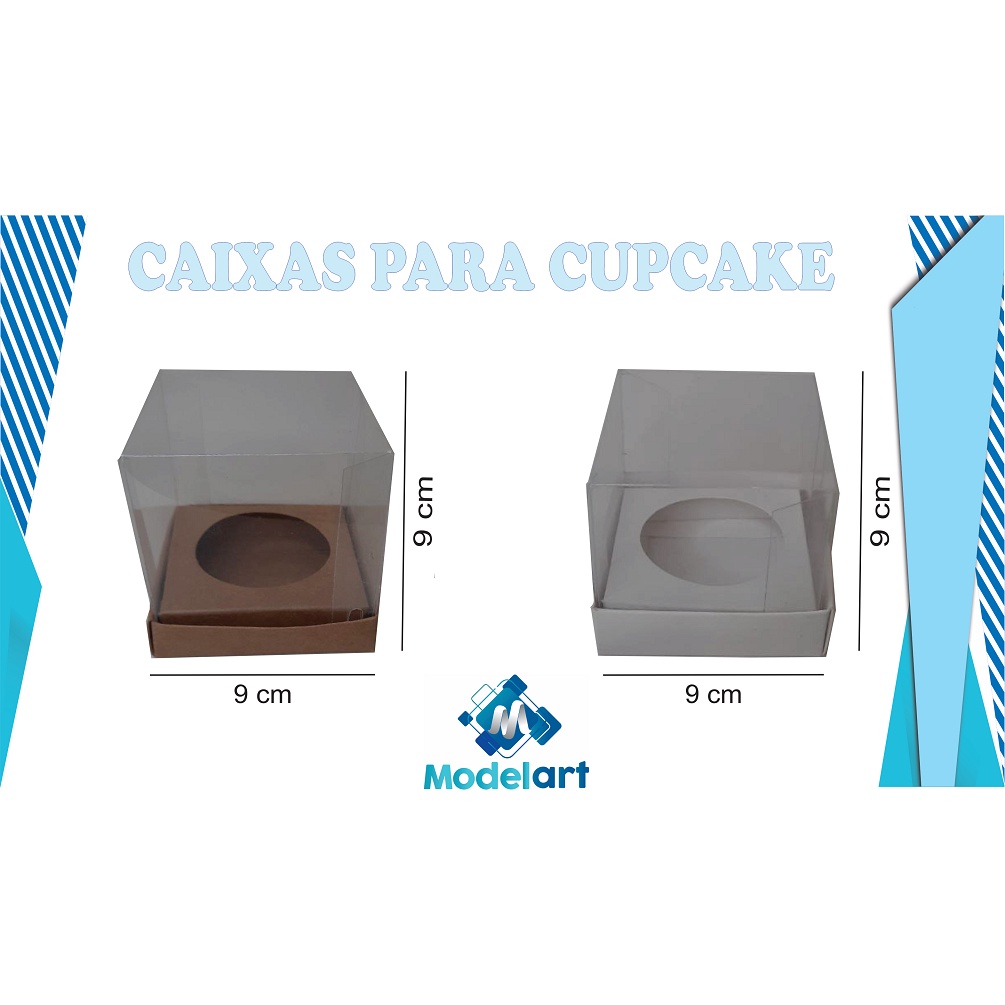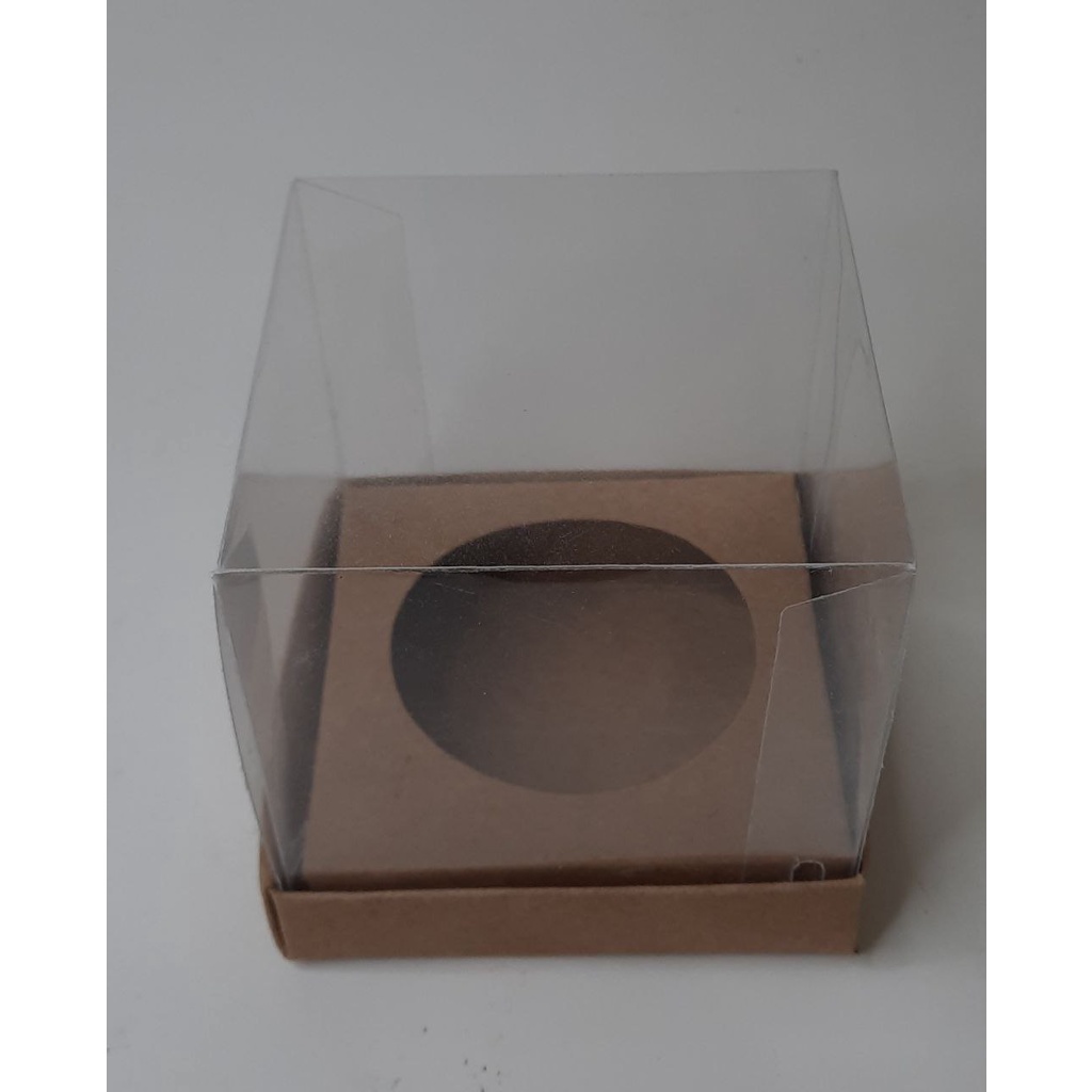 10 Caixas para 1 Cupcake 9x9x9 Tampa Acetato - Kraft e Branco