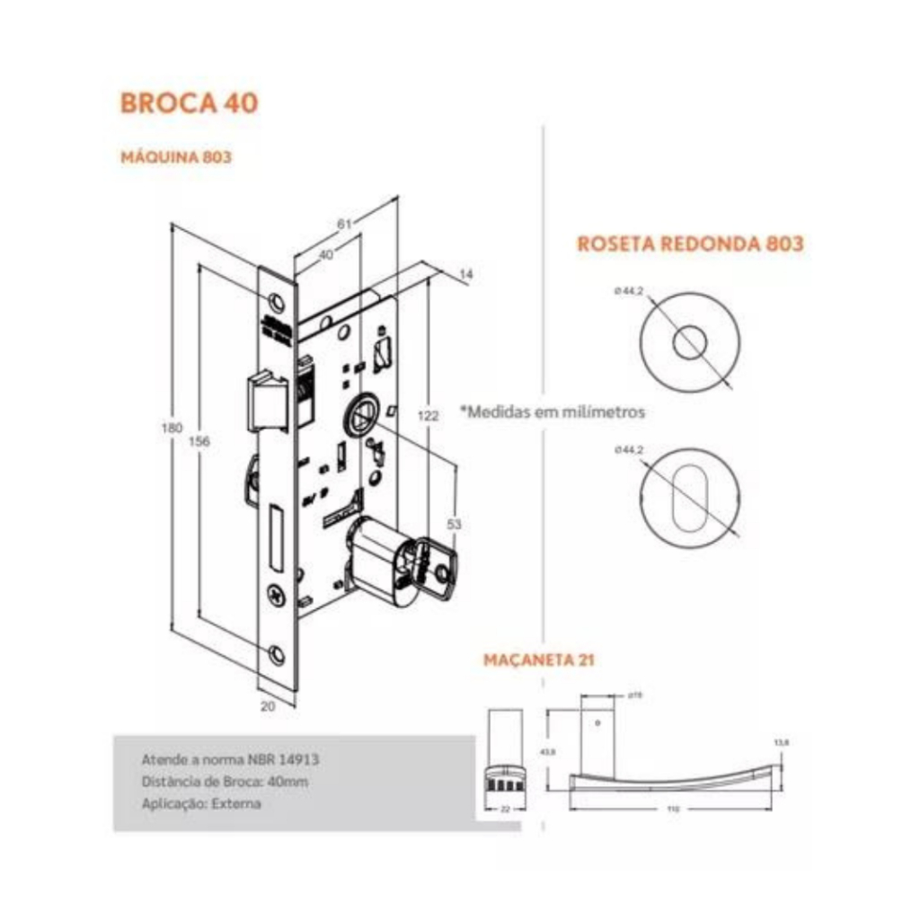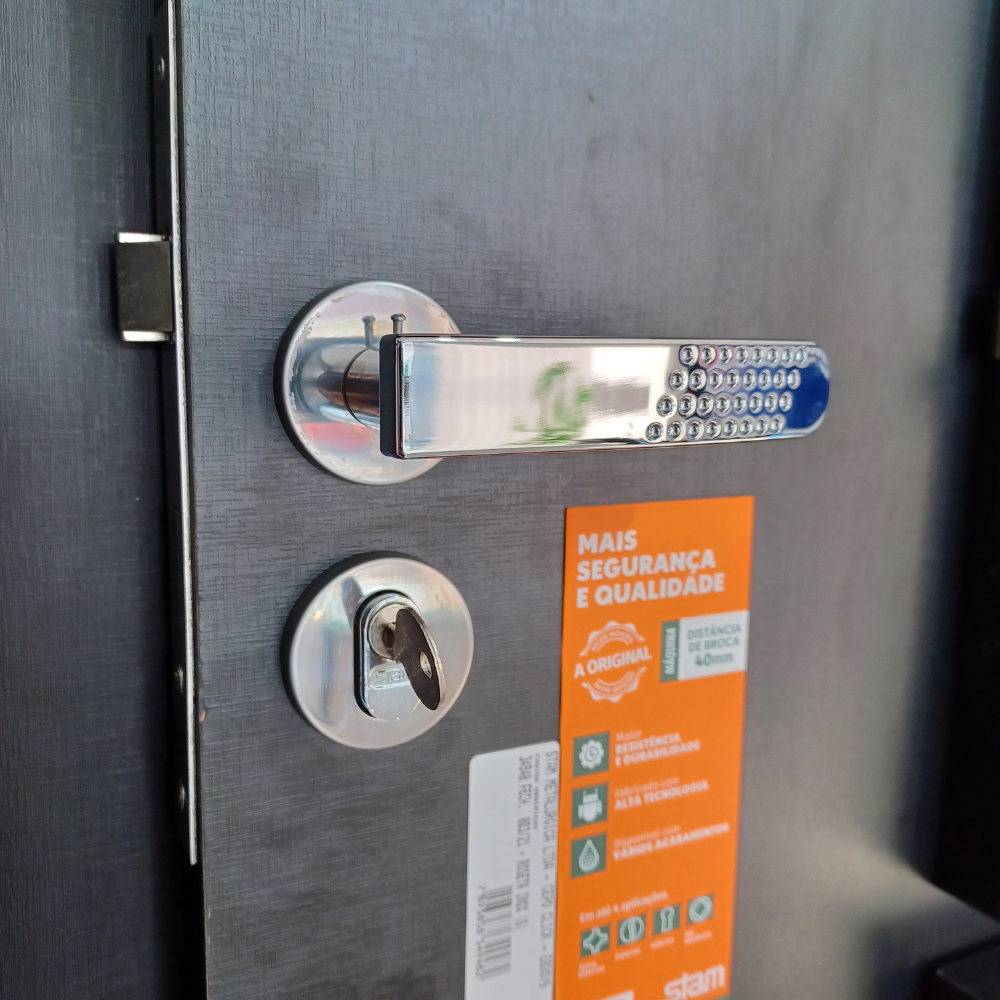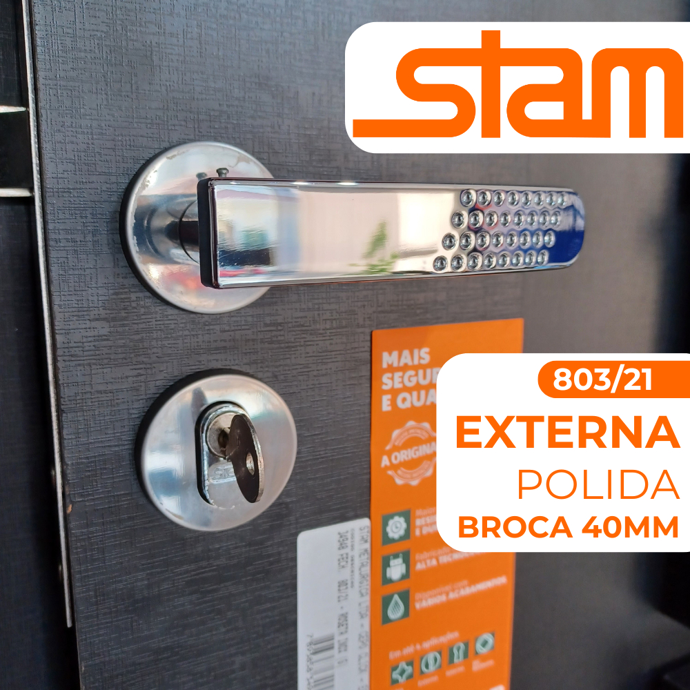 Fechadura de Porta Externa Stam 803/21 Portas de Madeira/Alumínio Broca 40mm Redonda Inox Cromada