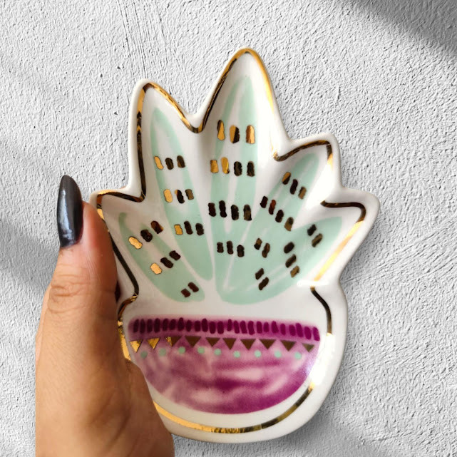 Porta Treco Desenho Suculenta Material Cerâmica Decorativo