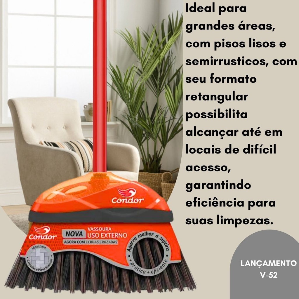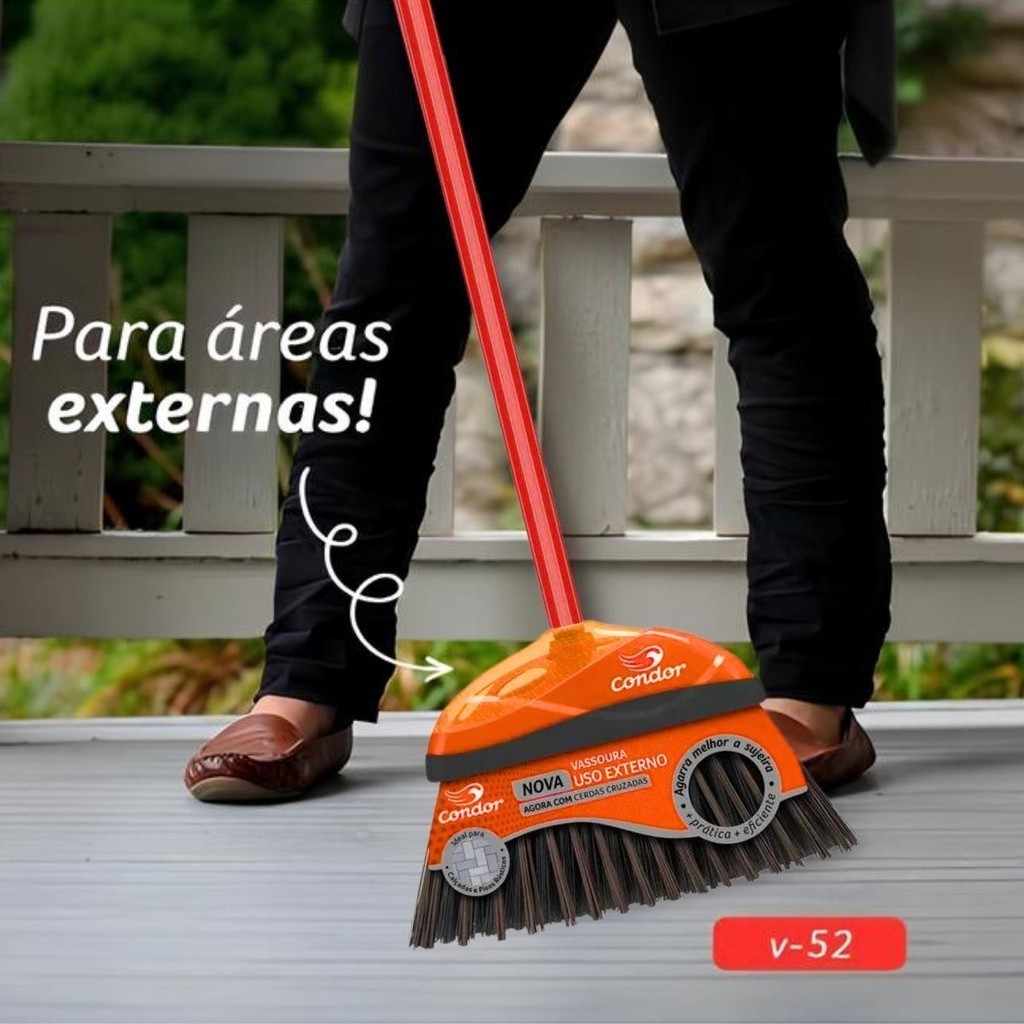 Vassoura Piaçava Cerdas Cruzadas Firmes Multiuso Resistente V-52 Com Cabo Qualidade Condor
