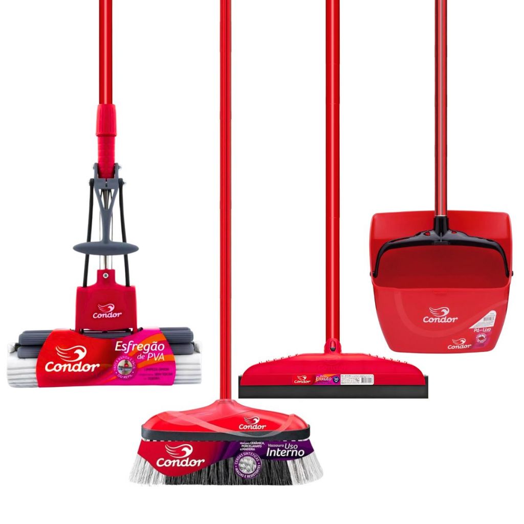 Kit Limpeza 1 Vassoura Varre Muito Interna 1 Varre Fácil 1 Rodo 30cm 1 Pá Caçamba Grande Qualidade Condor