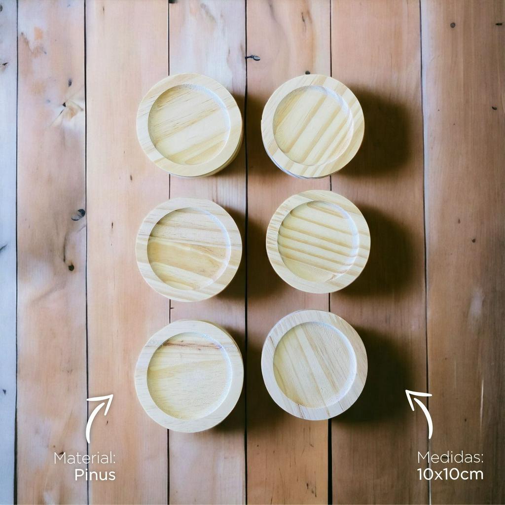 6 Pires Redondo Porta Xícara Copo De Madeira Pinus Mesa