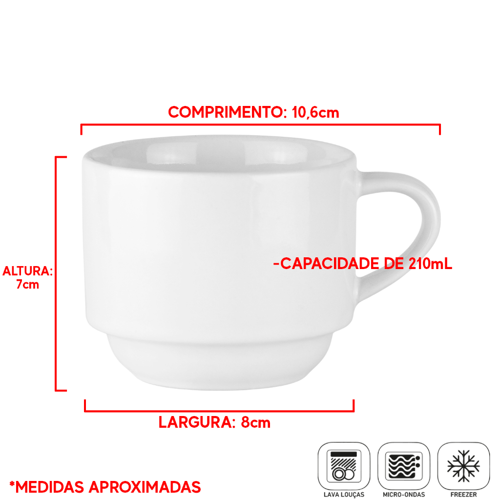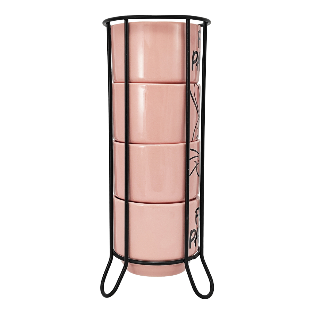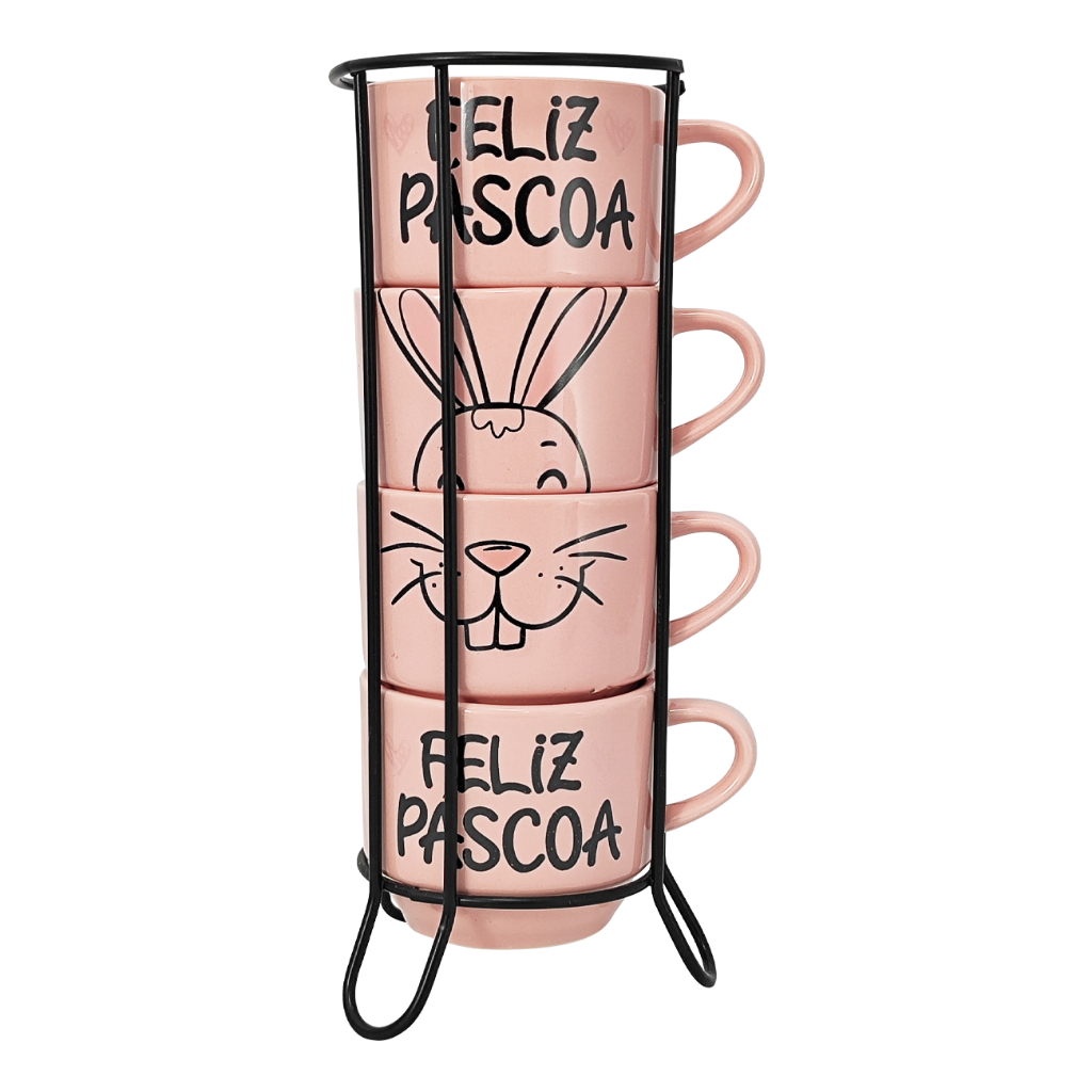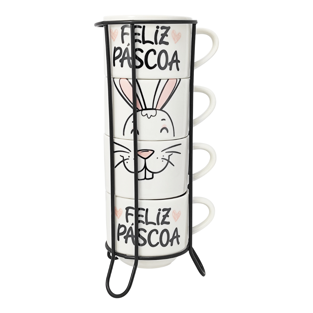 Kit 4 Xícaras Porcelana 210ml Páscoa com variação cor + Suporte