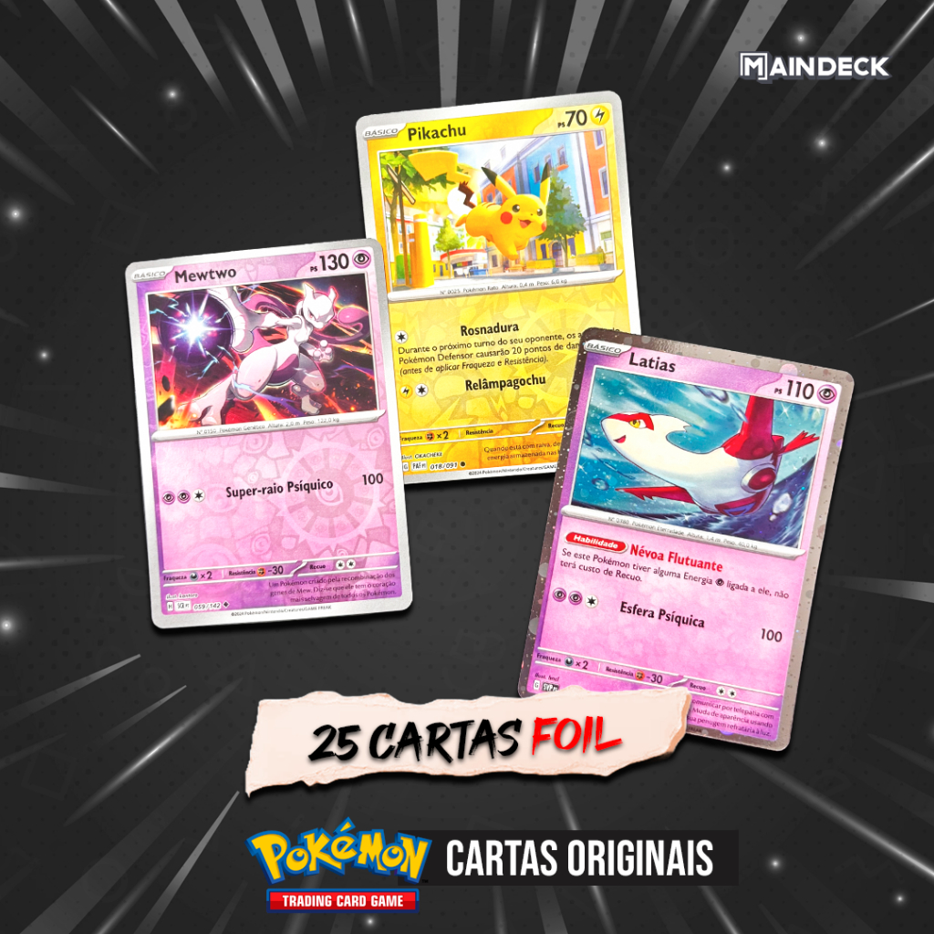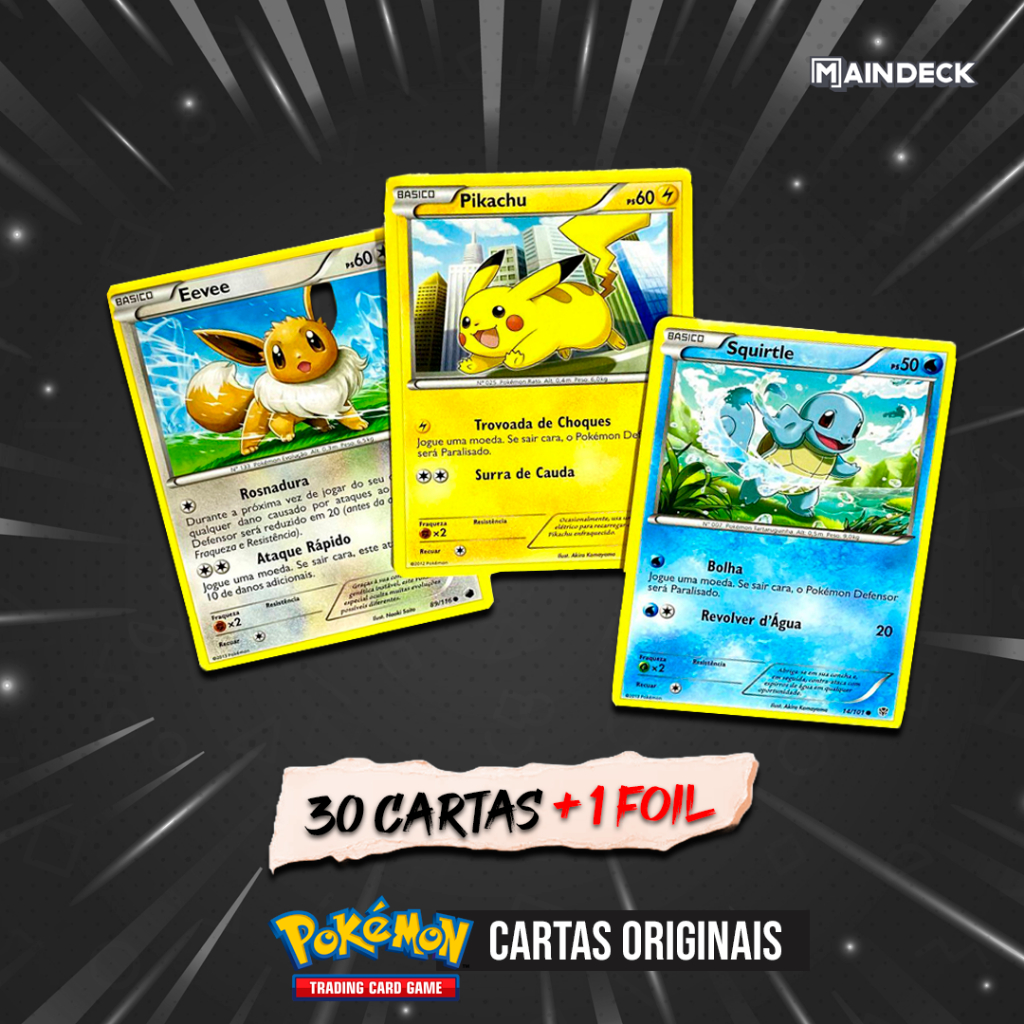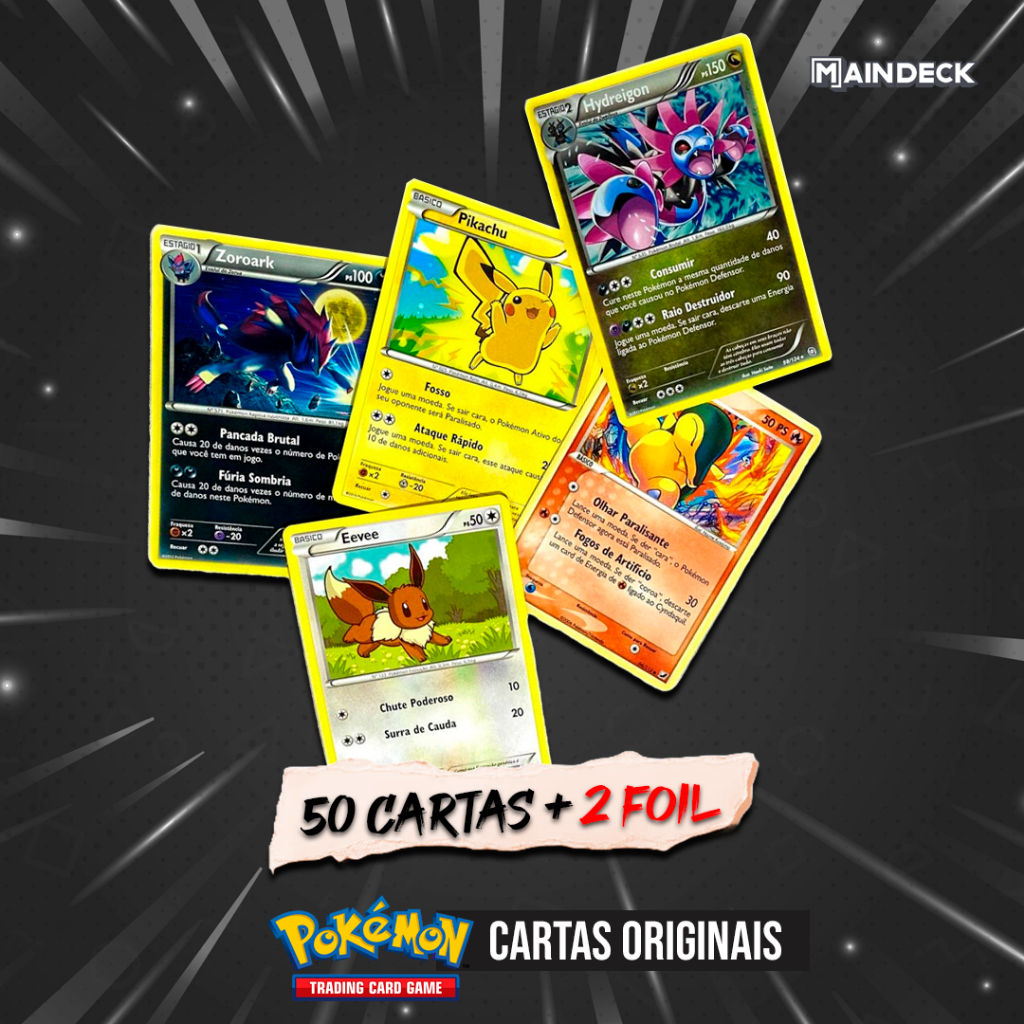 Cartas Pokémon Lote de 50 e 100 + Foil Brilhante Garantida surpresa - Produto Original Copag