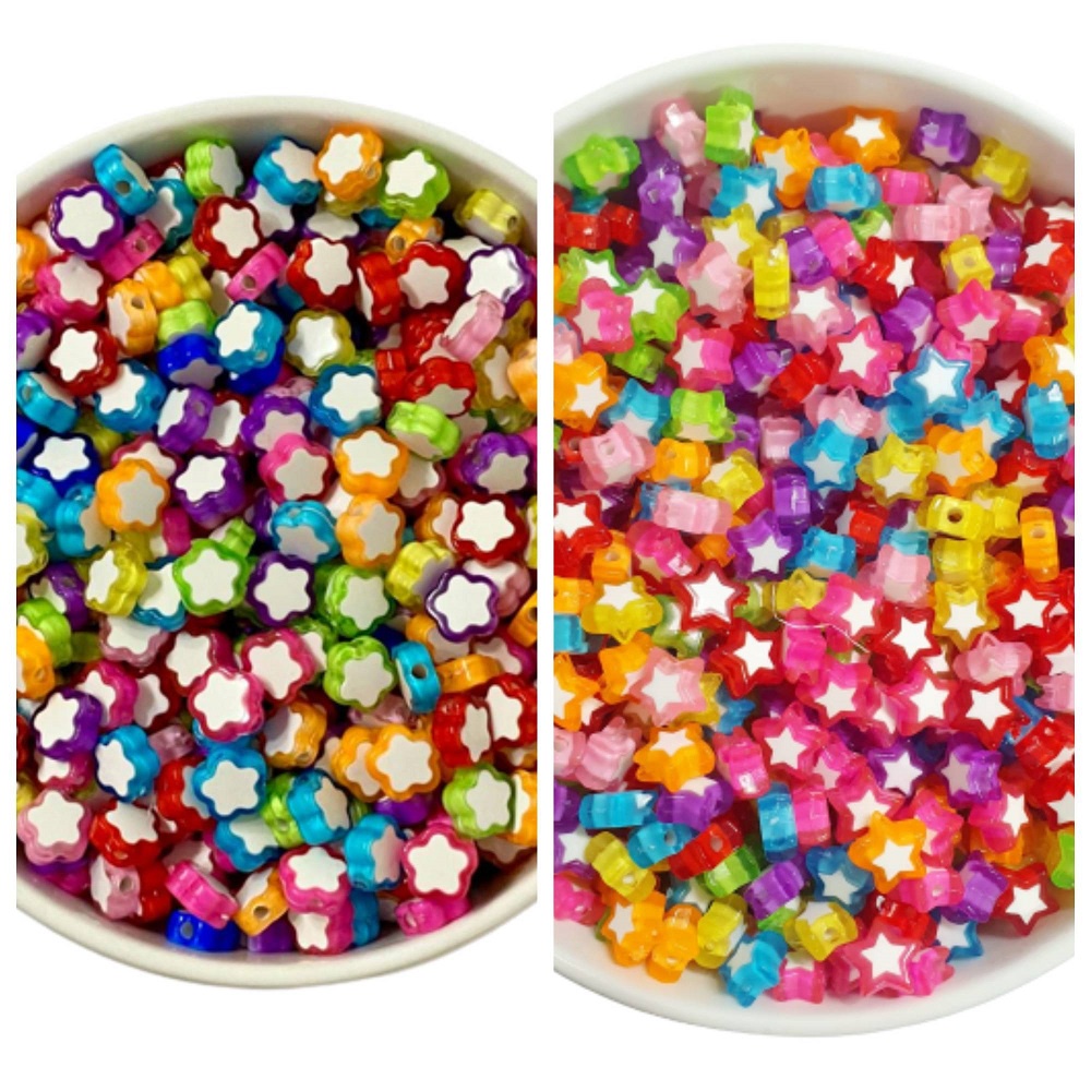 Miçanga Estrelas Transparente Mix Com Meio Branco